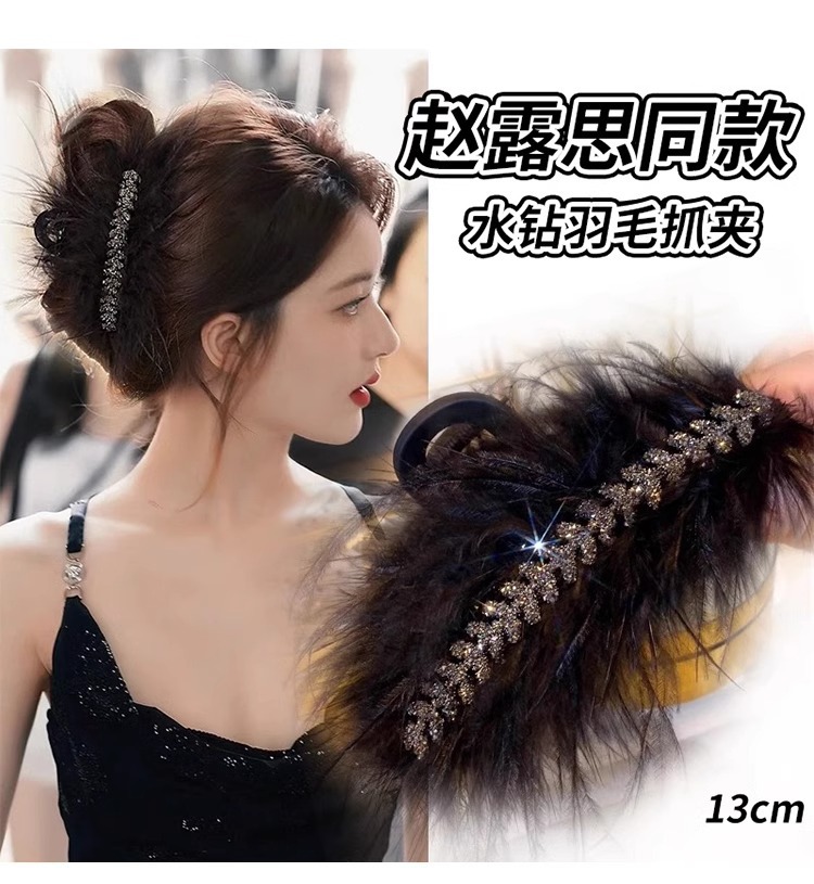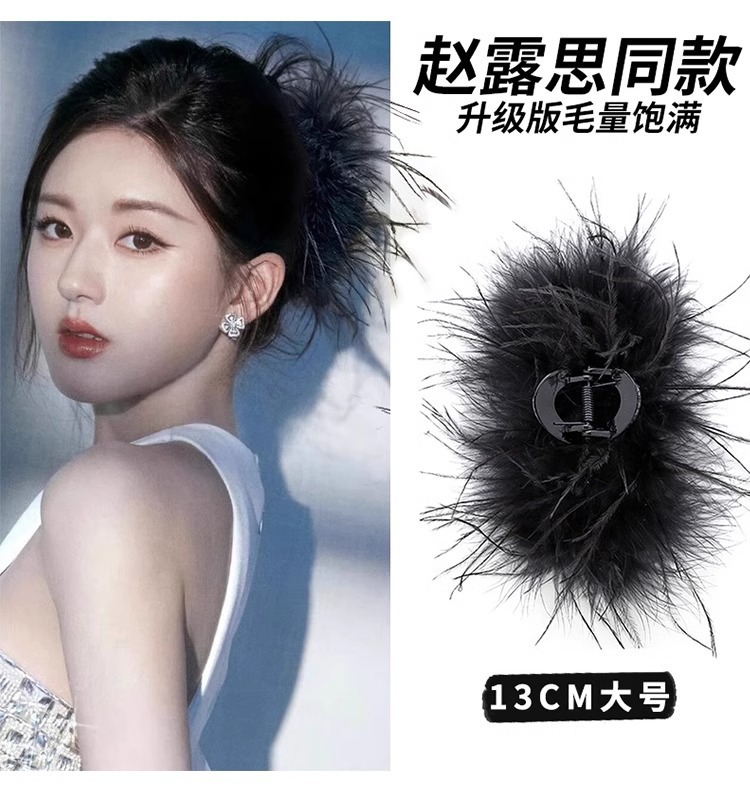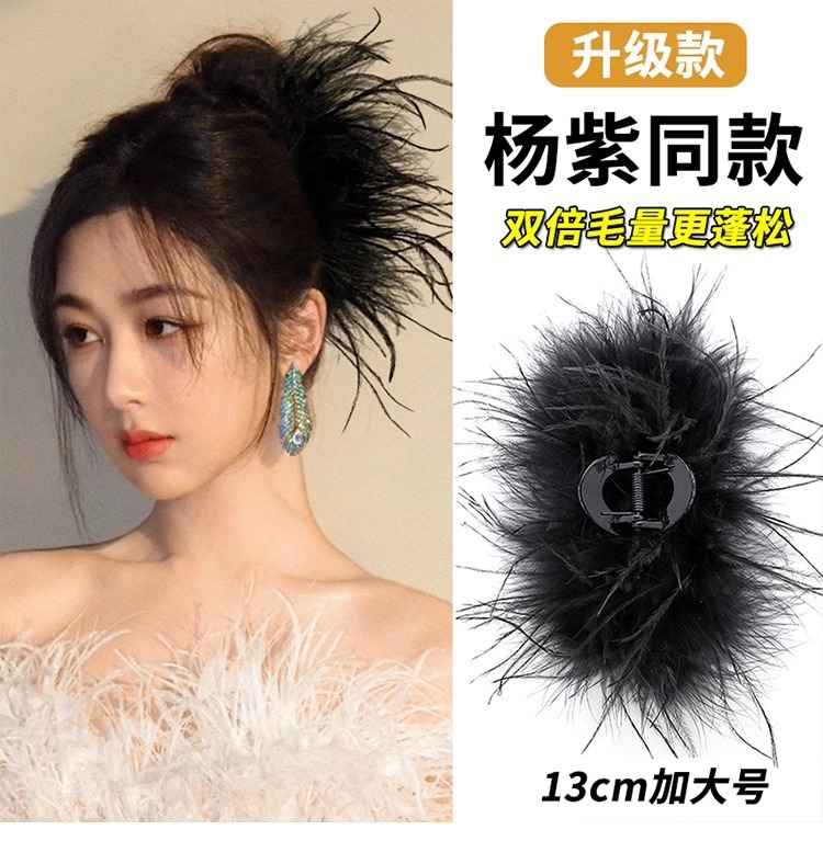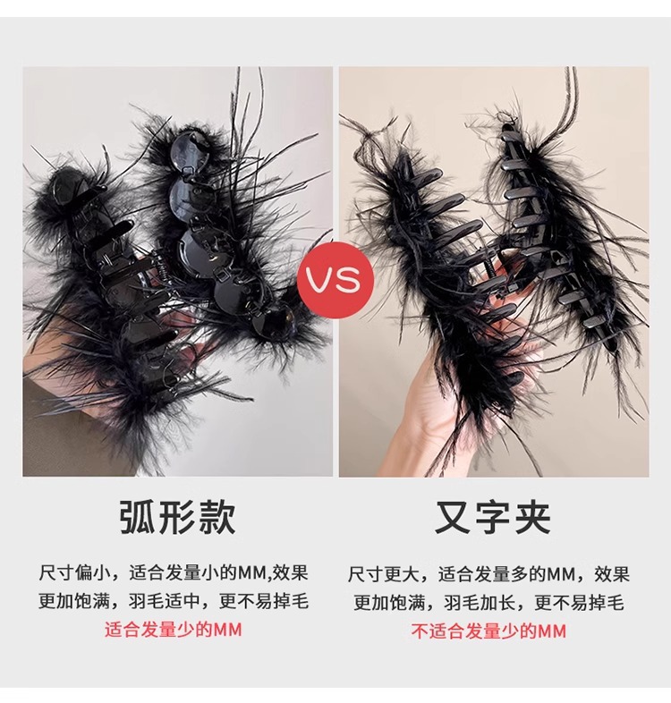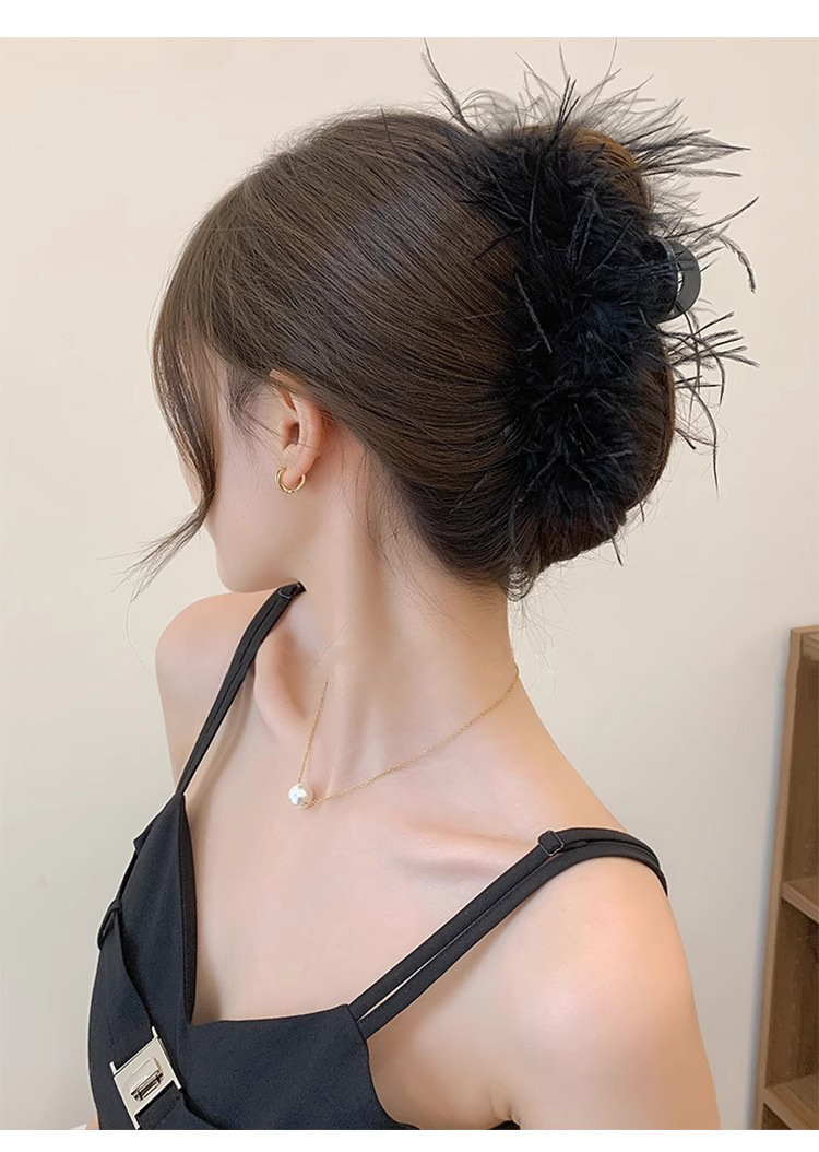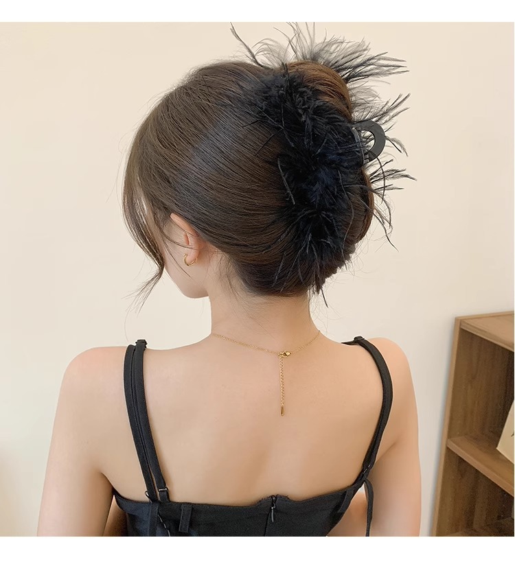 秋冬高级感鸵鸟毛鲨鱼夹女大号羽毛抓夹后脑勺毛绒发饰头夹子