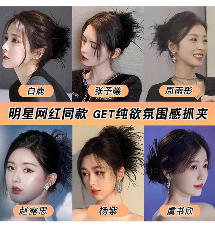 鲨鱼夹ins风羽毛抓夹毛毛发抓超仙头饰高级感发夹后脑勺鲨鱼夹