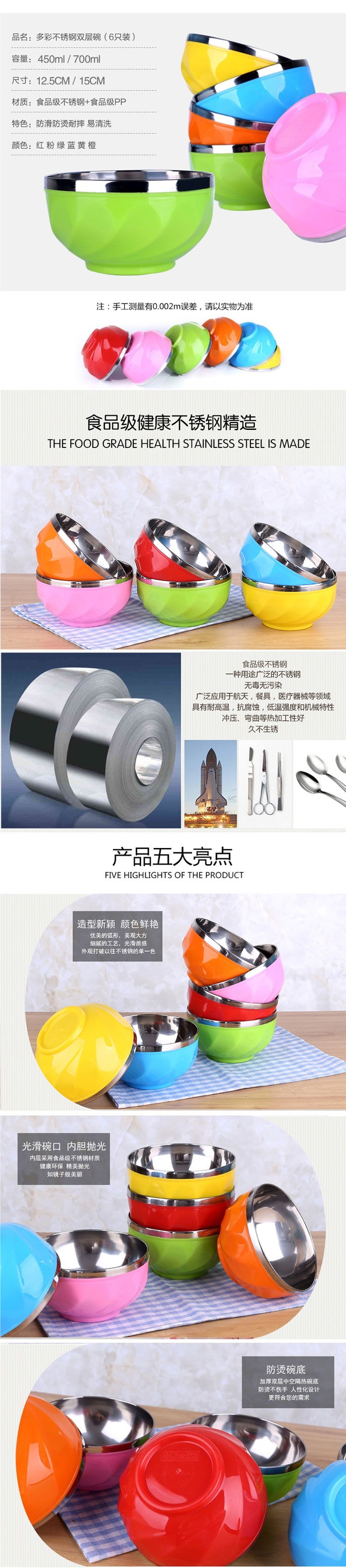 カラー二層ステンレス碗創意麺碗スープ碗子供食事断熱茶碗家庭用百合碗五色碗
