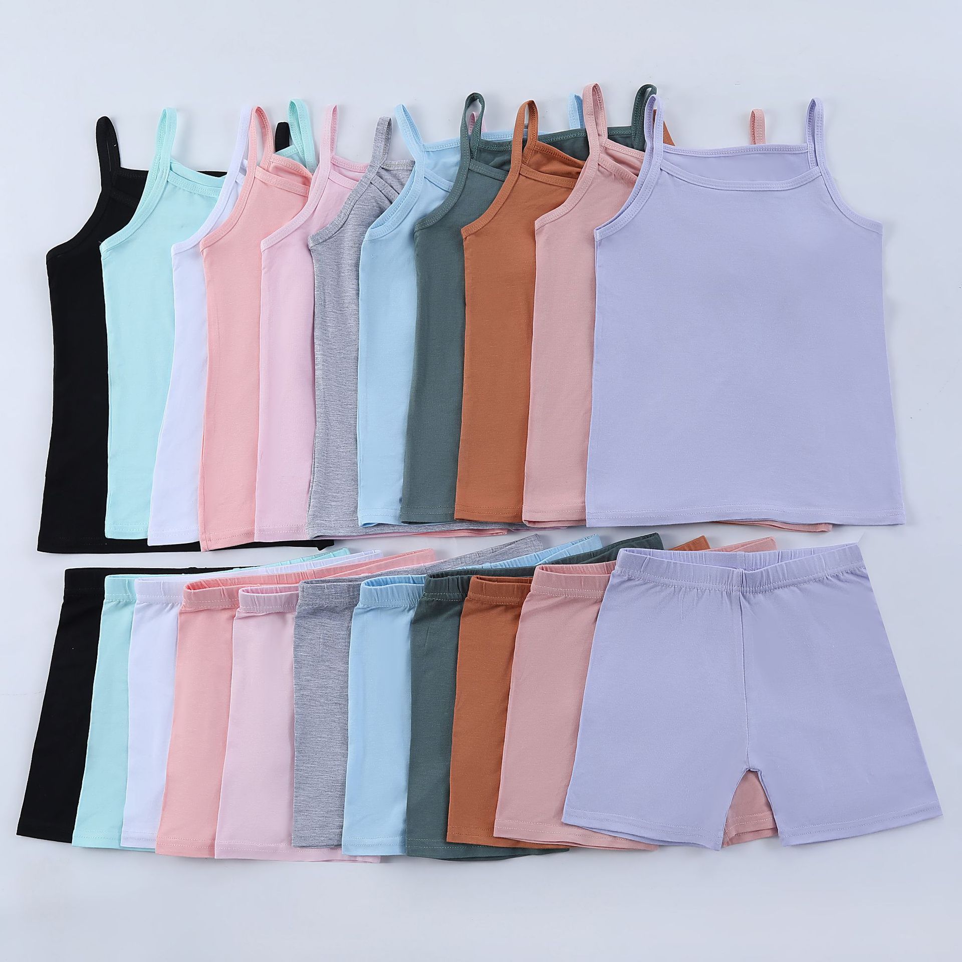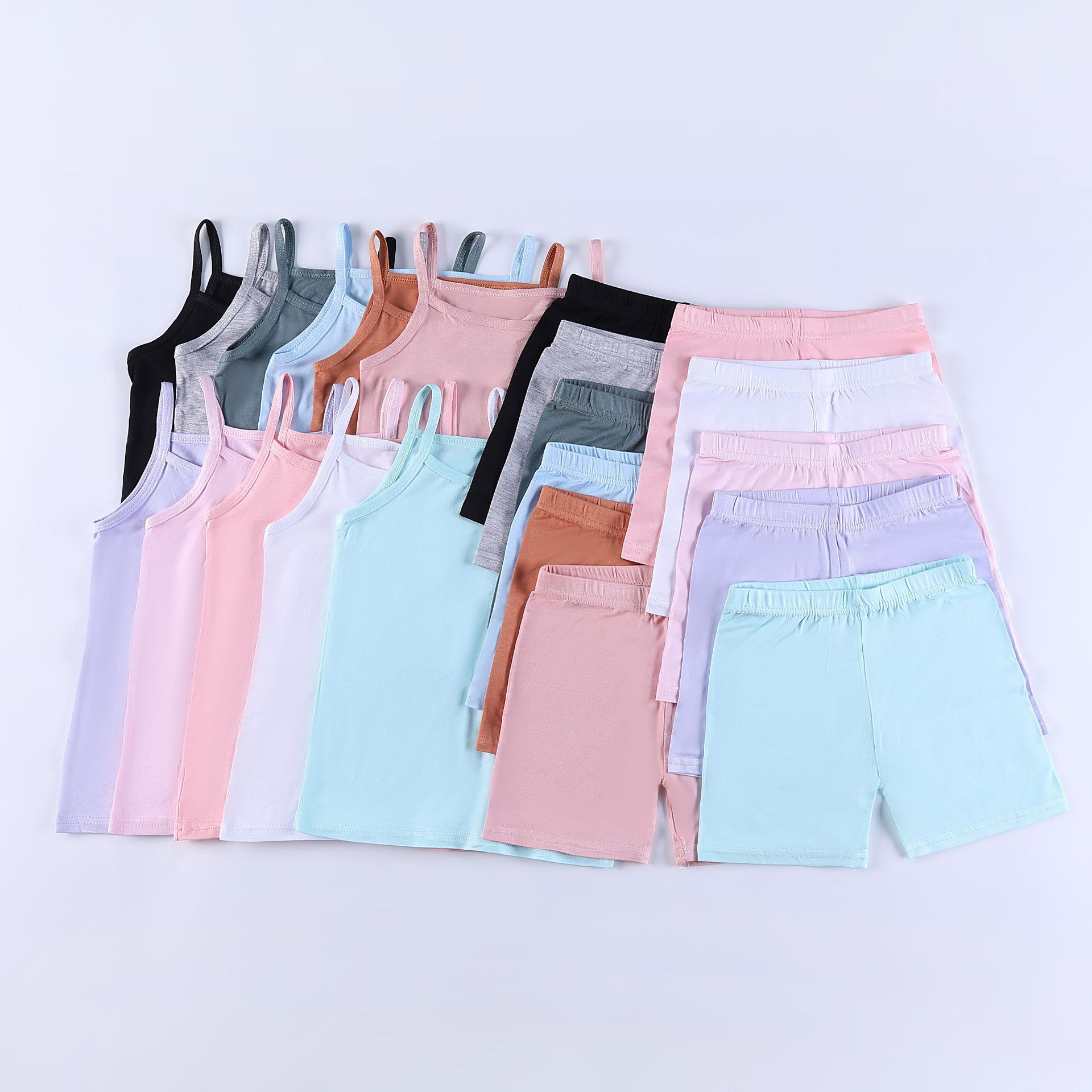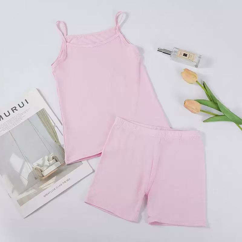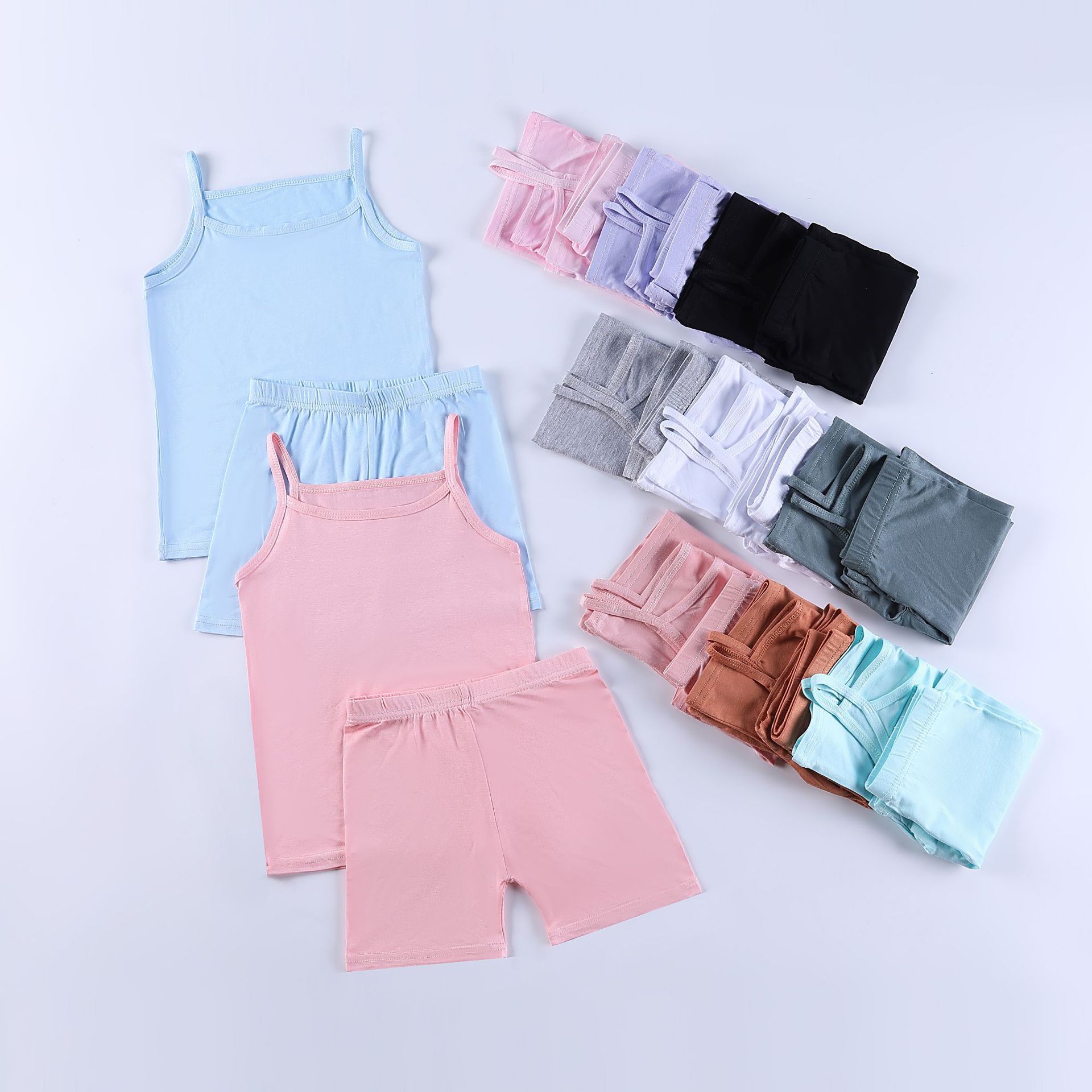 夏用可愛いライクラ綿A級男女兼用子供用ベストノースリーブショートパンツ下着2点セット