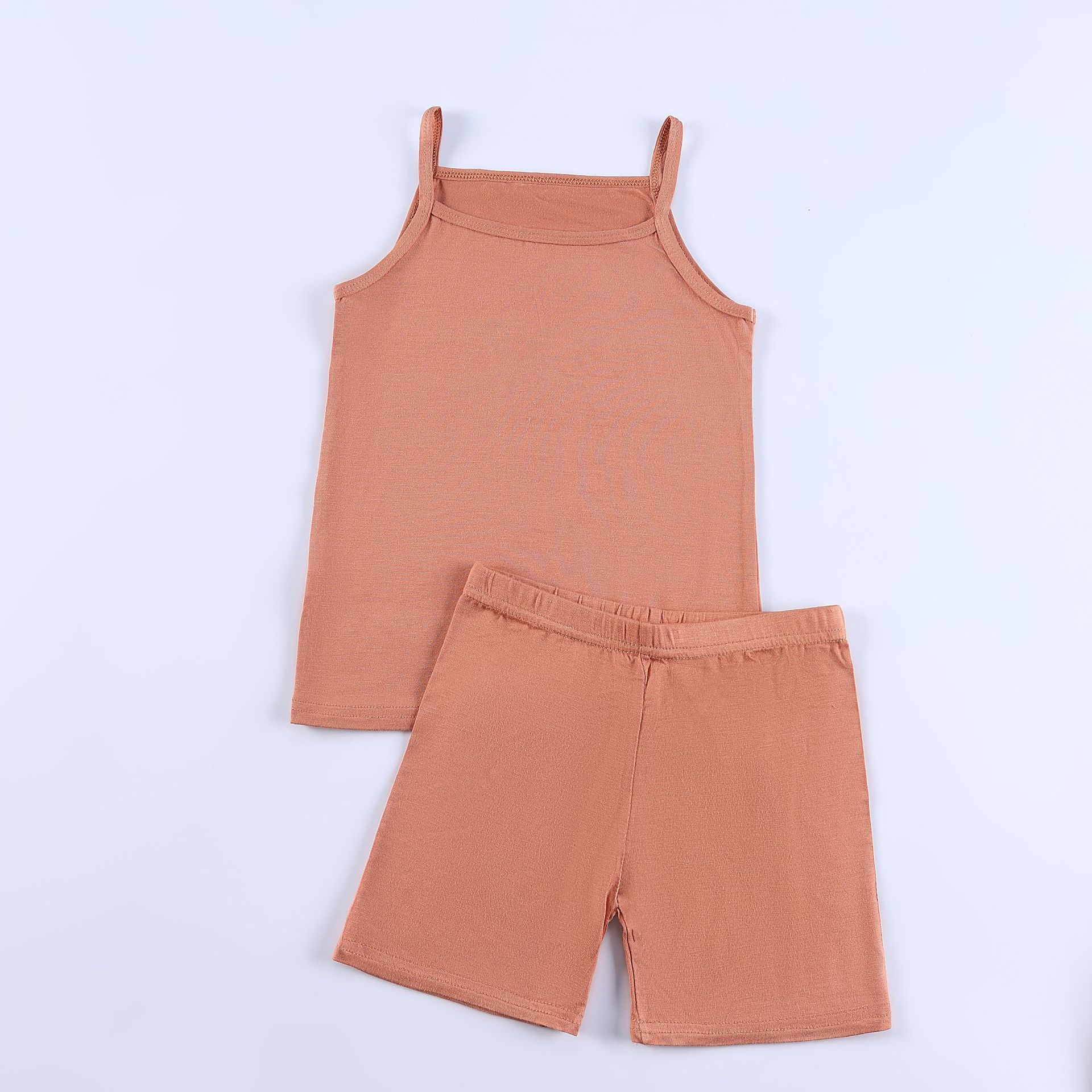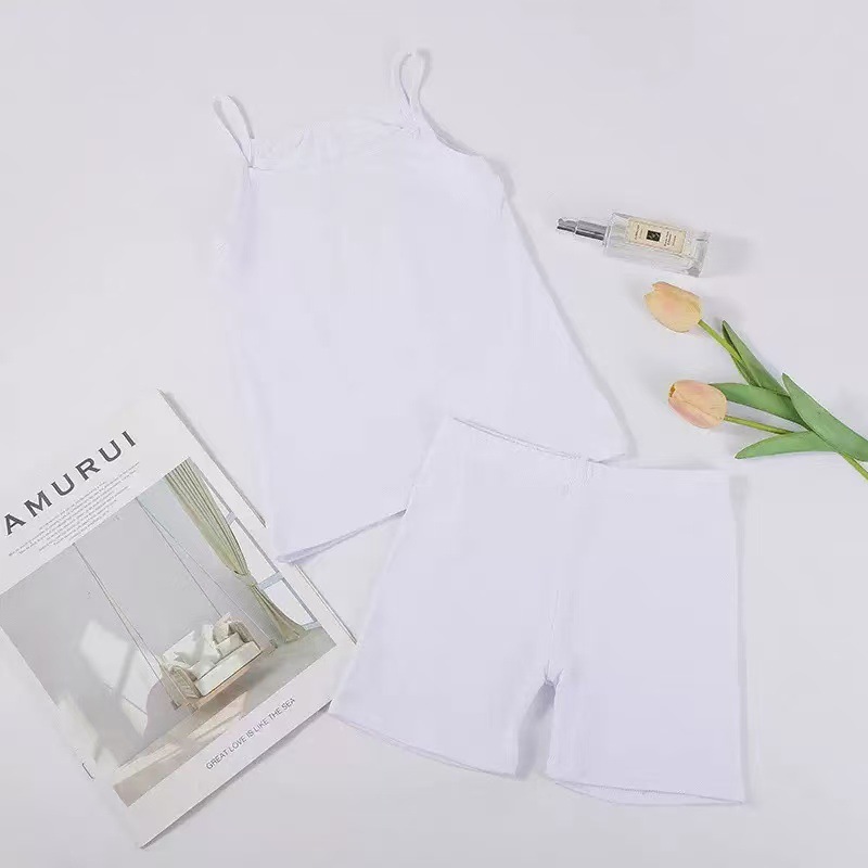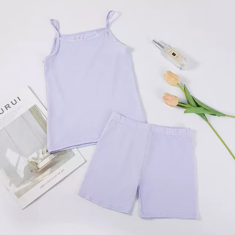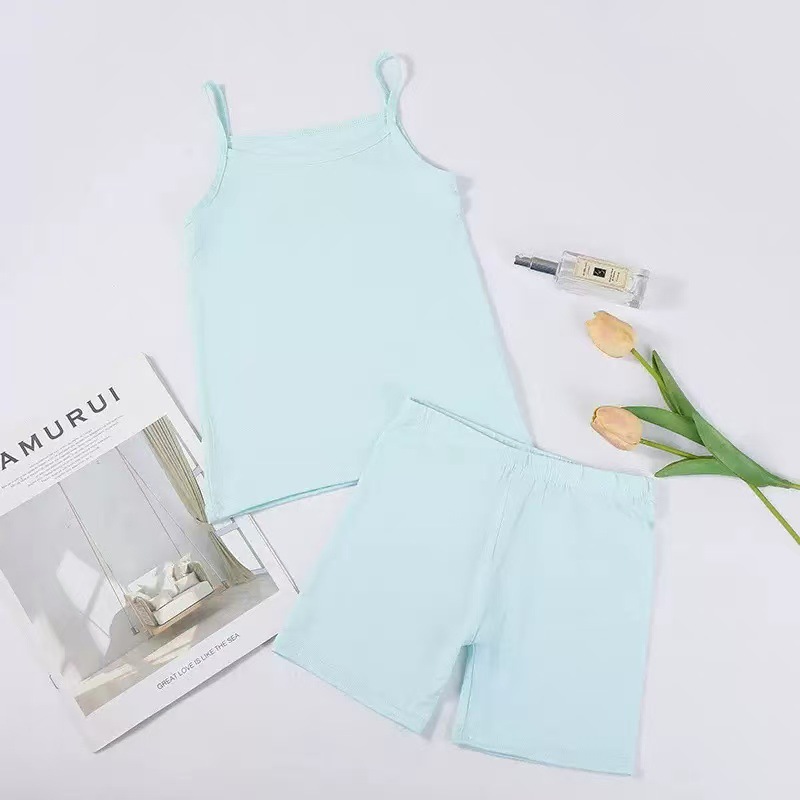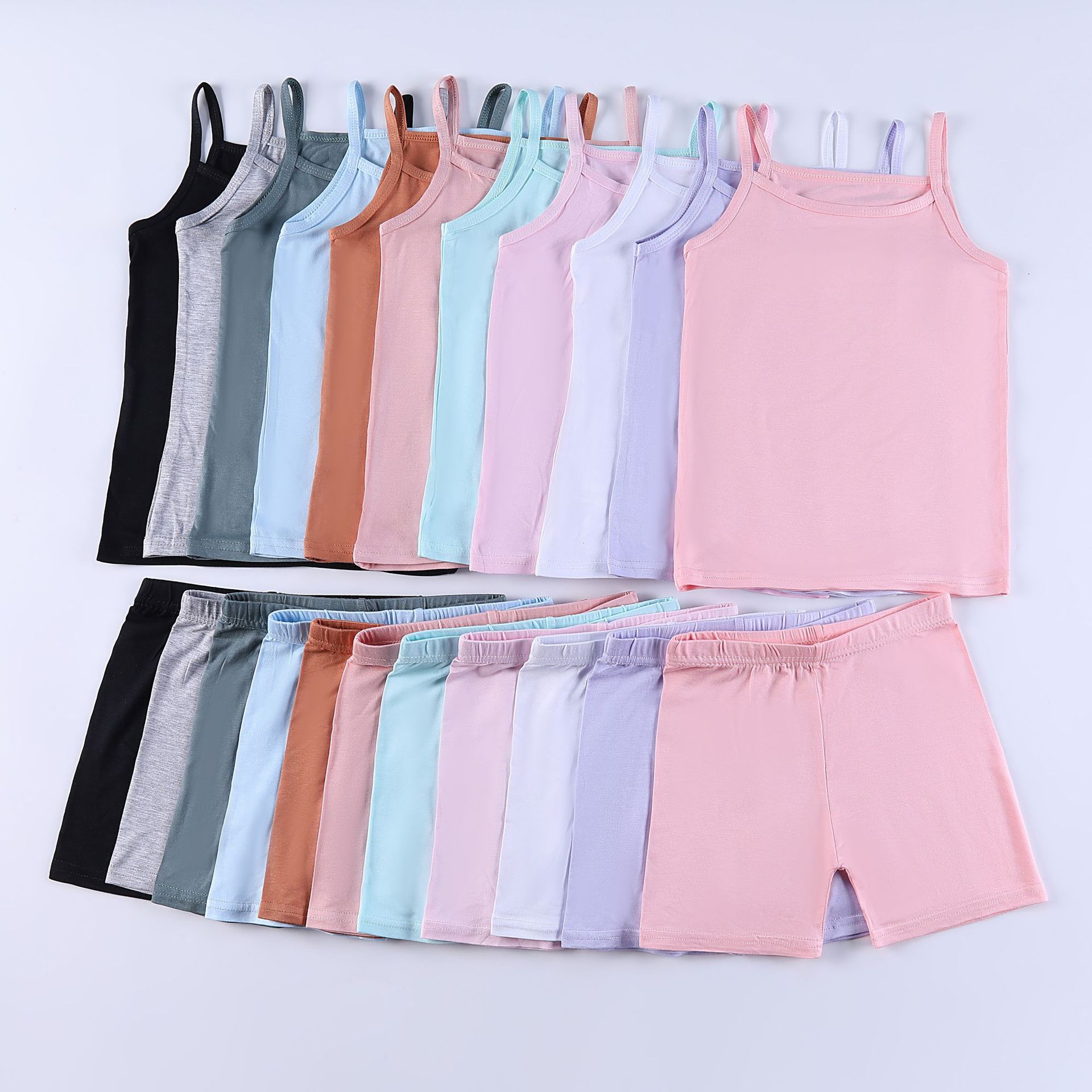 夏用可愛いライクラ綿A級男女兼用子供用ベストノースリーブショートパンツ下着2点セット
