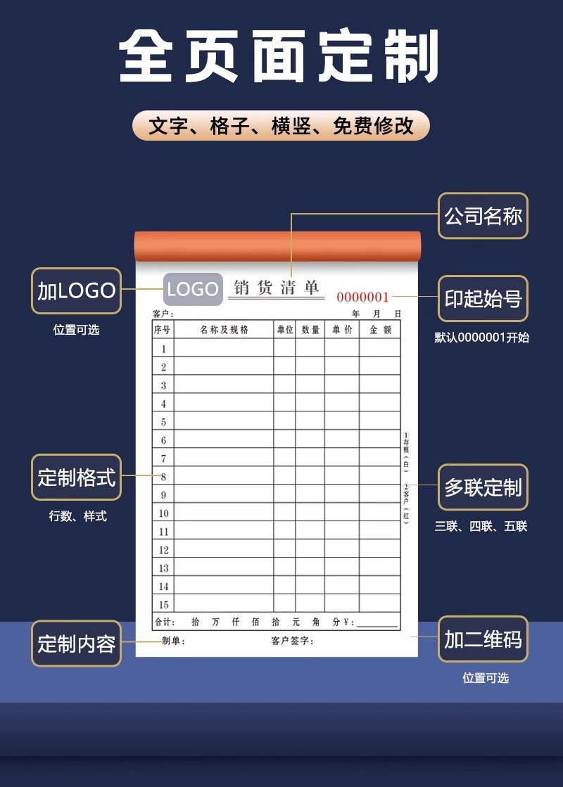 50本装送货单二联三联印刷单据订货出货发货单销货清单销售单单联