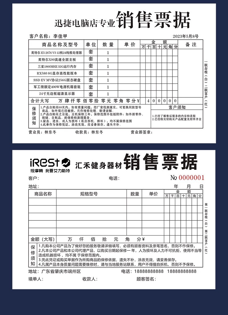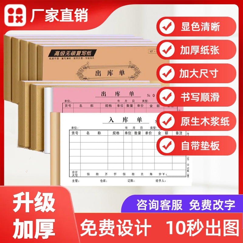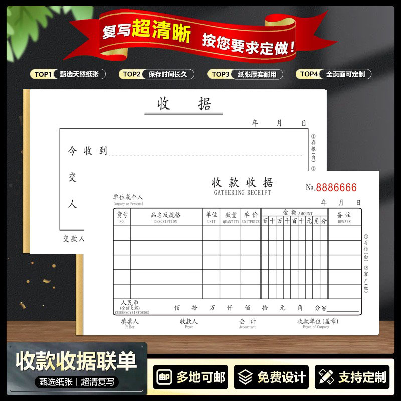 【メーカー直販】領収書二連領収書三連多規格増厚複写紙領収書本領収書の販売費