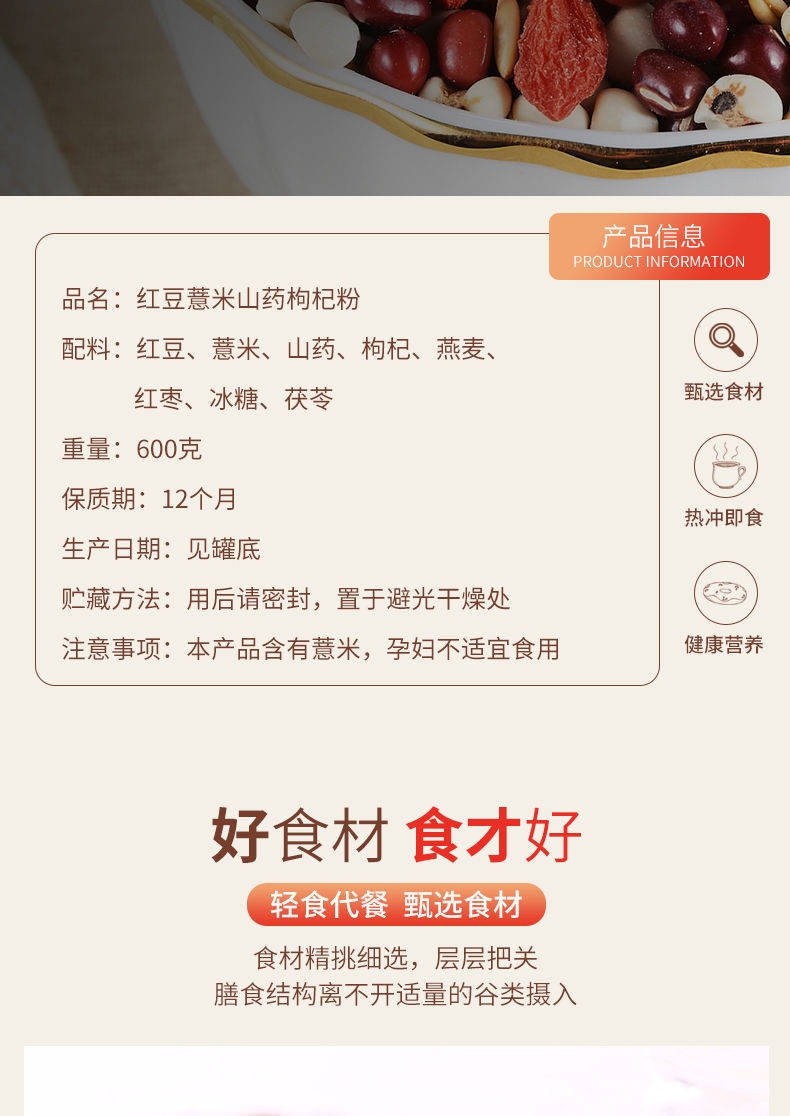 小豆、大麦、山芋、クコの実粉末 1200g 朝食用食品 すぐに食べられる小豆、大麦粉末 小豆、大麦の食事代替粉末