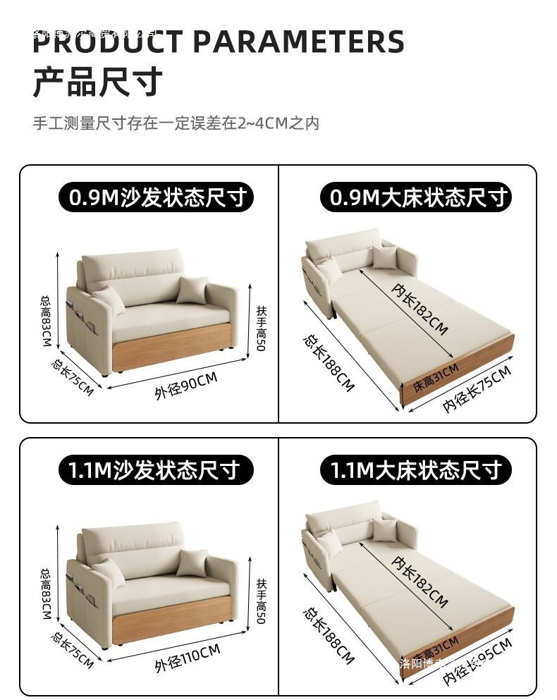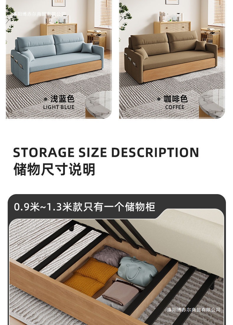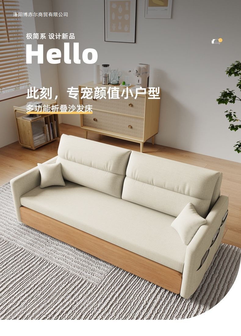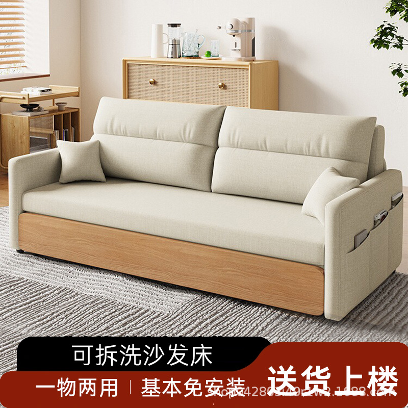 原木风沙发床一体两用可折叠储物小户型两用布艺单双人位多功能床