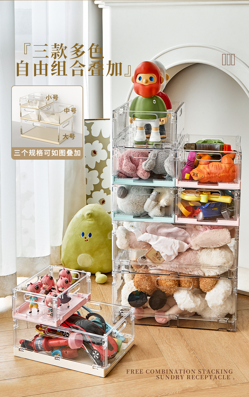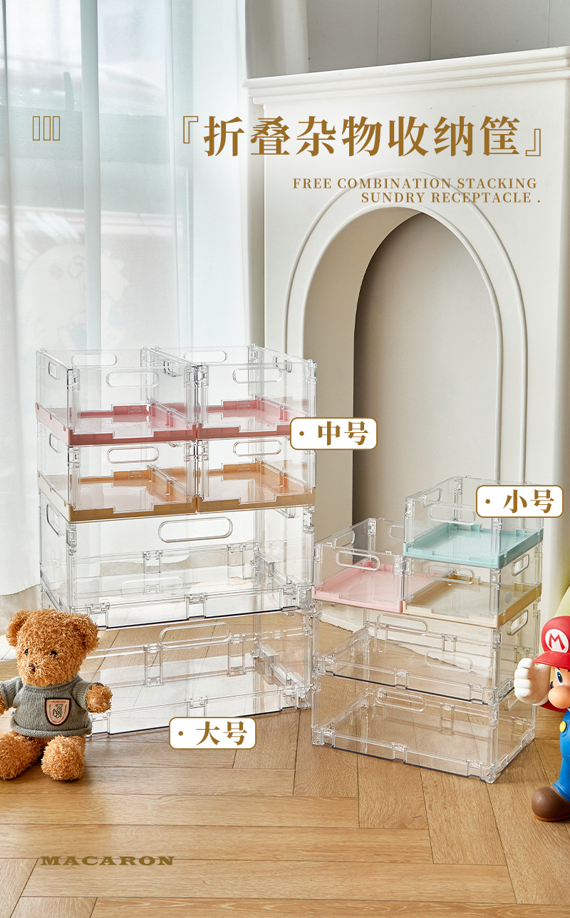 折り畳み可能な収納かごアクリル雑貨収納かごは、デスクトップの間食整理箱のカラー収納箱を重ねることができる