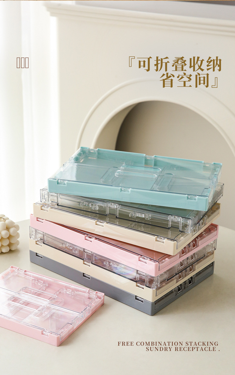 透明な軽量高級折りたたみ収納ボックス化粧品整理ボックスキャビネット収納ボックスは、雑貨やおもちゃの収納ボックスと積み重ねることができます