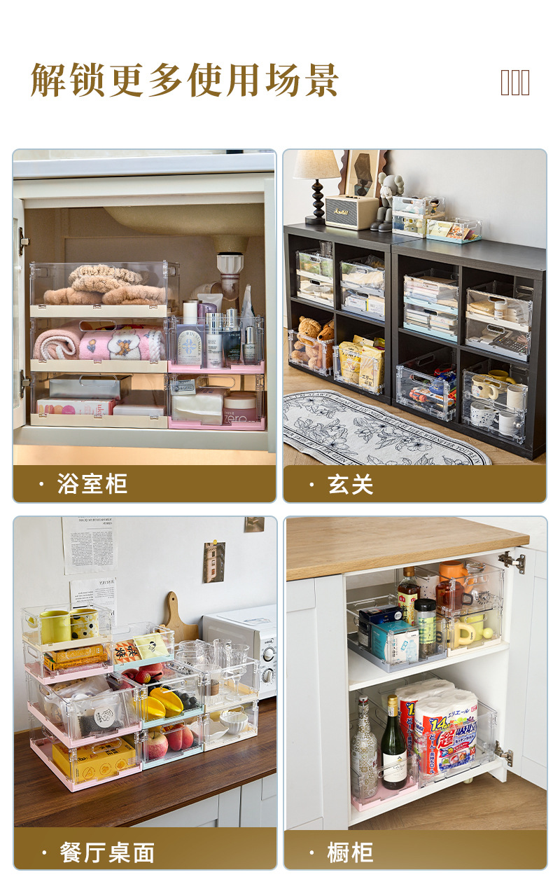 家庭用折りたたみ収納バスケットアクリル雑貨収納バスケットはデスクトップスナック収納ボックスカラフルな収納ボックスと積み重ねることができます