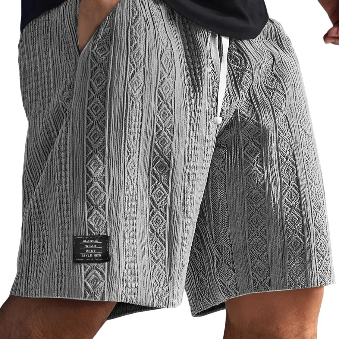 2025跨境亚马逊独立站欧美男士日常提花纹理时尚徽标休闲舒适短裤