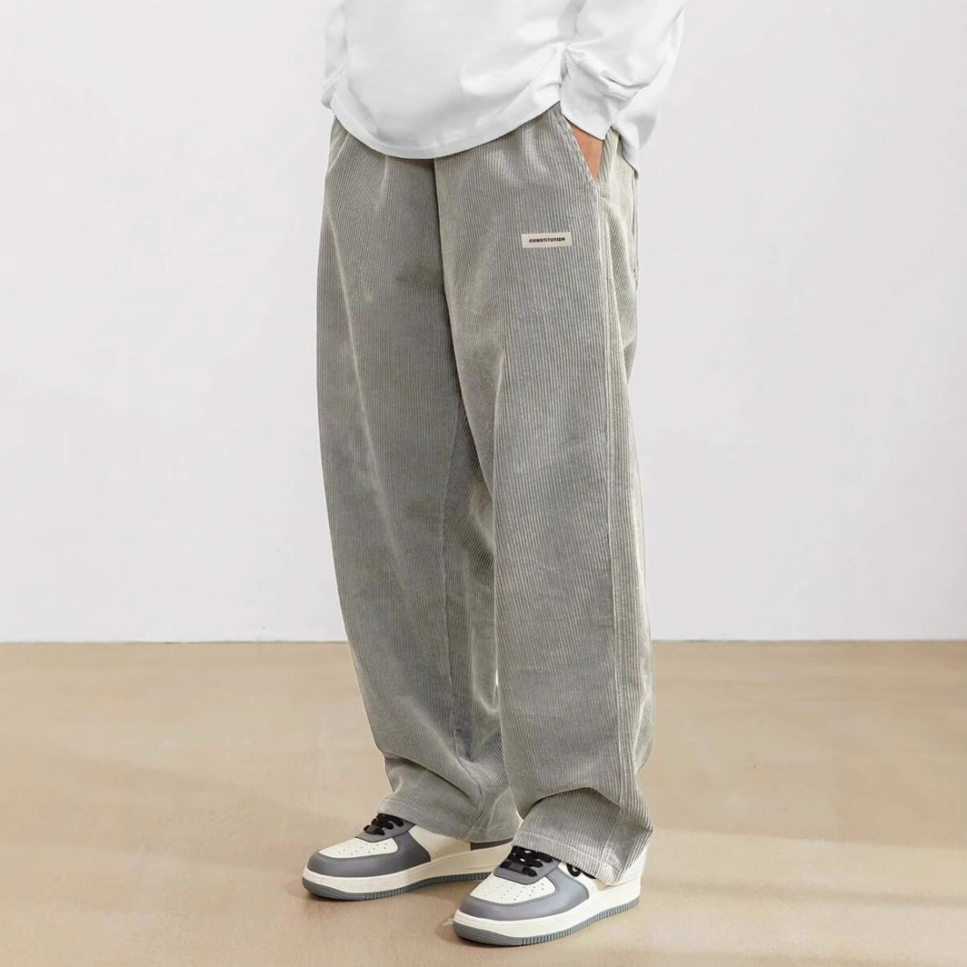 日本の純色のシンプルなファッションブランドの男性秋冬工装ズボンは快適でゆったりしています。