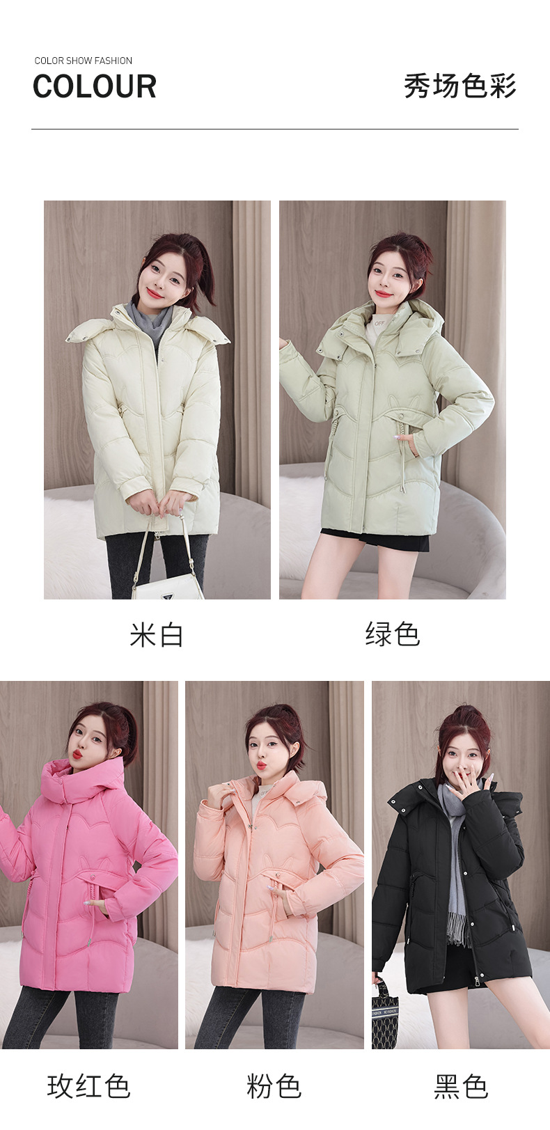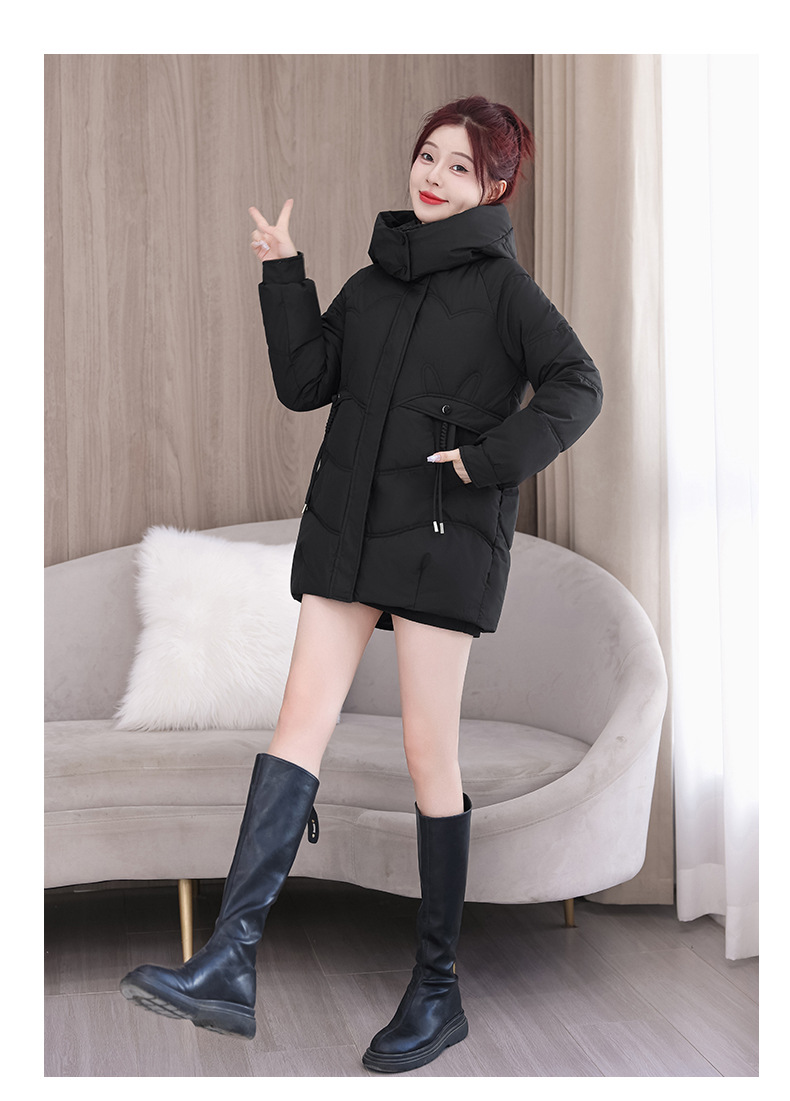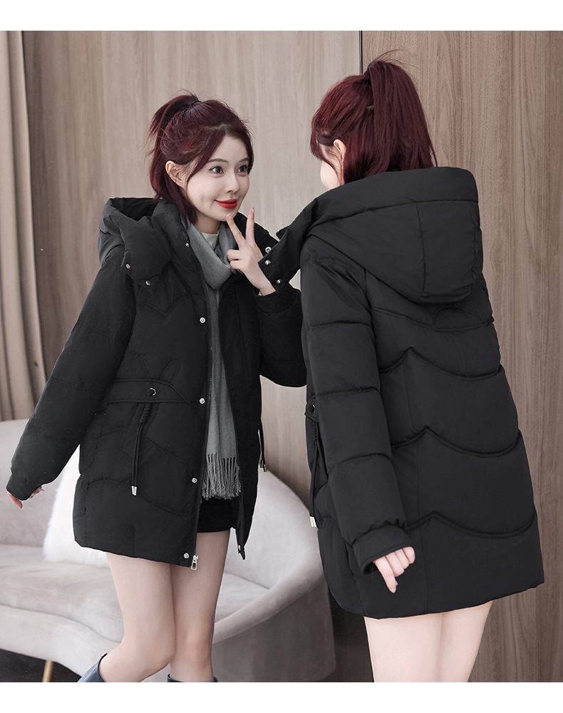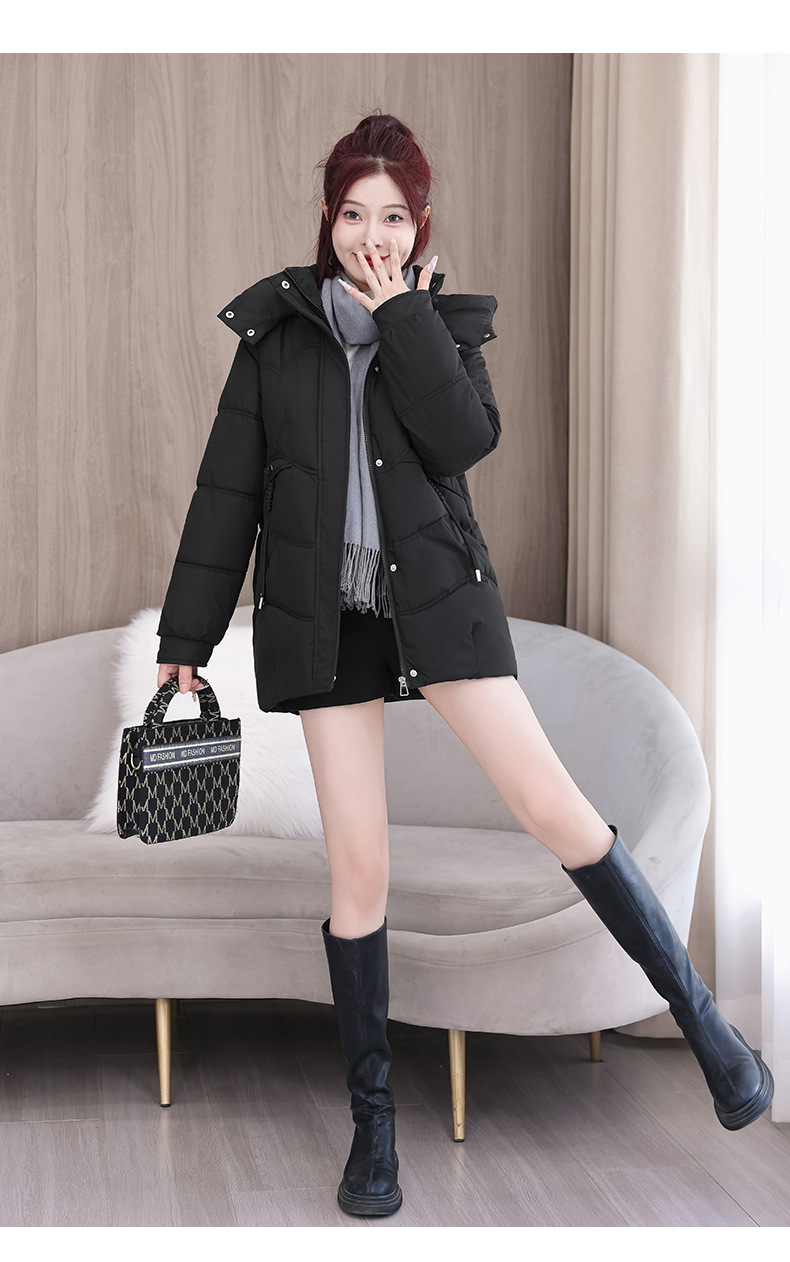 2025年冬新作の人気商品、韓国風スリムフィット中丈綿服、厚手で暖かい万能レディースコート