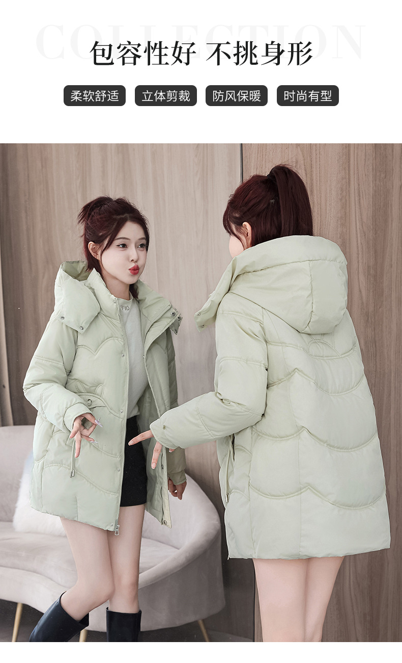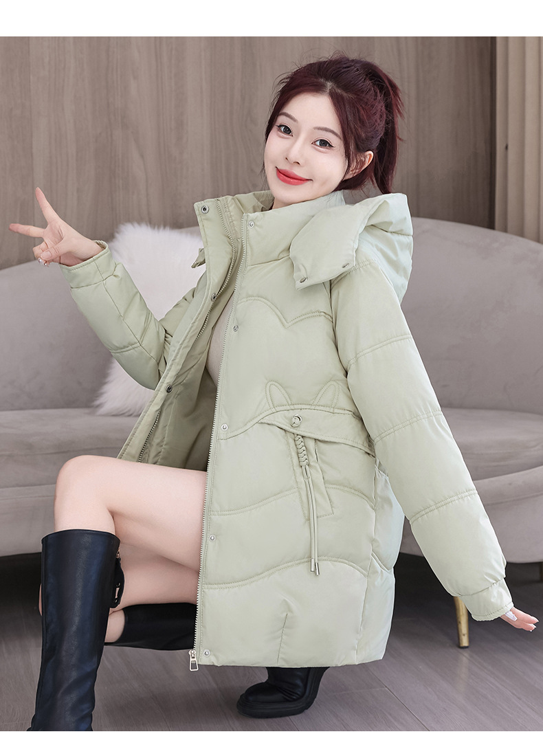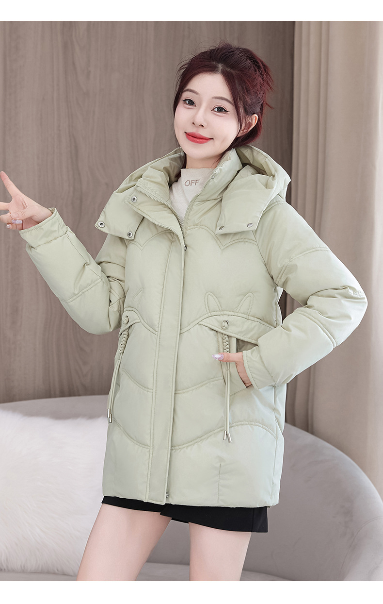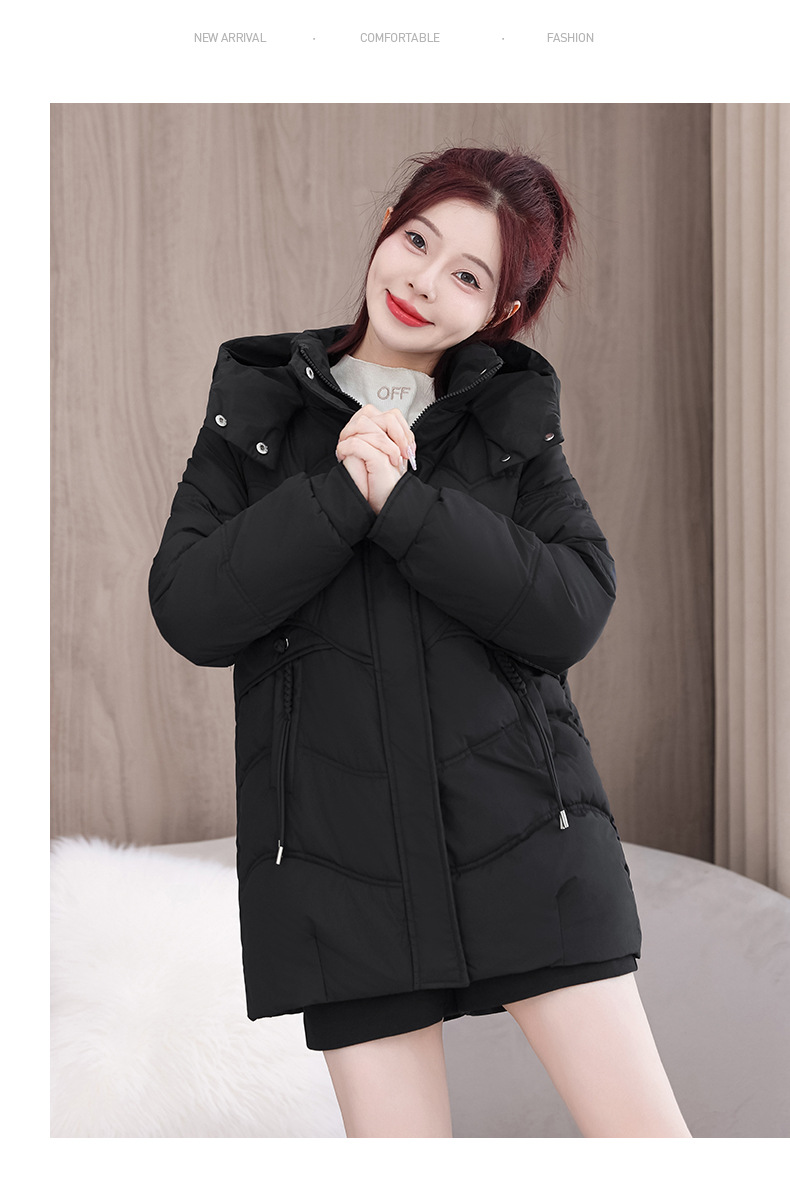 2025年冬新作の人気商品、韓国風スリムフィット中丈綿服、厚手で暖かい万能レディースコート
