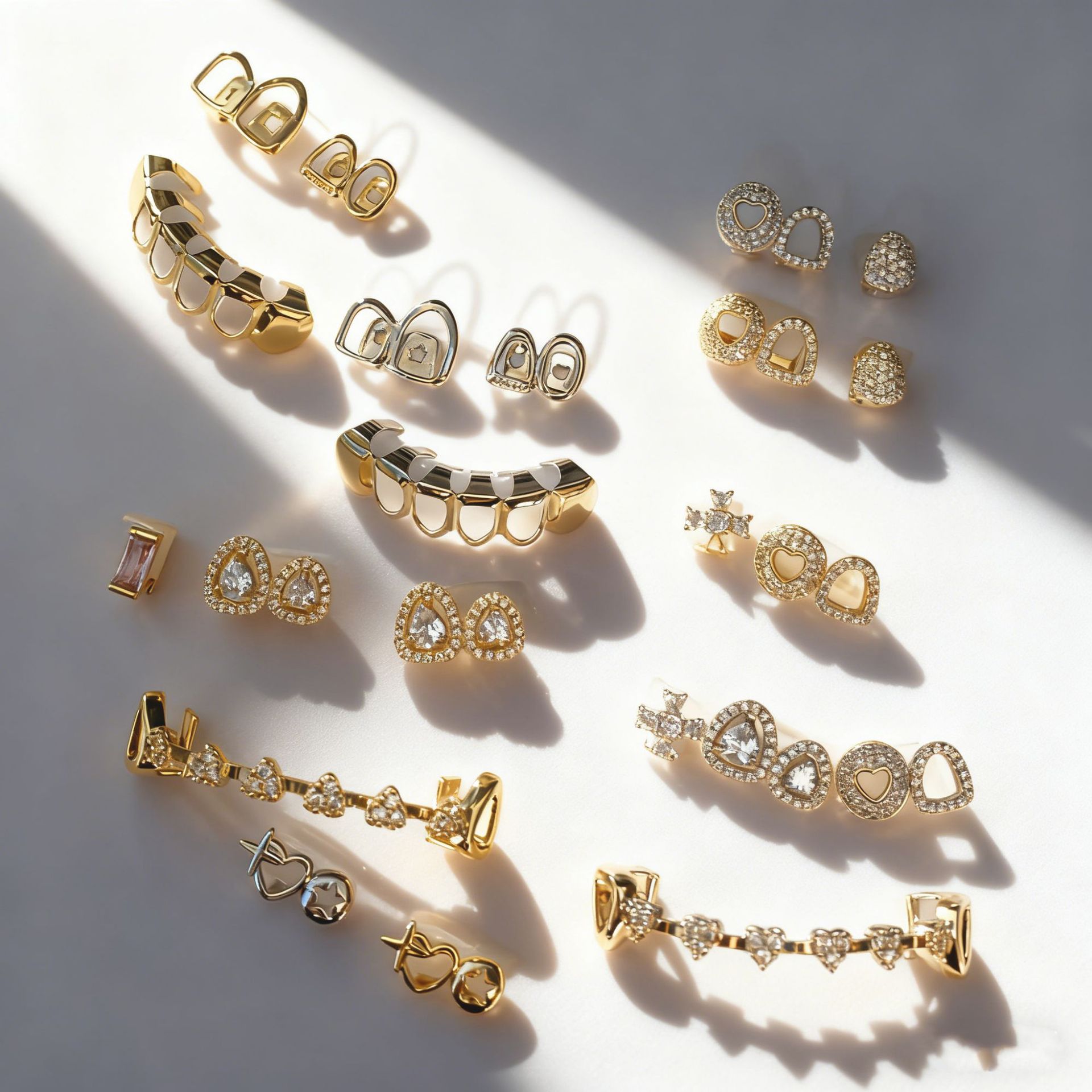 材质:优质铜,环保金属,真空电镀,食用级别固定蜡,每套牙套都配赠一个医用镊子、英文说明书!!