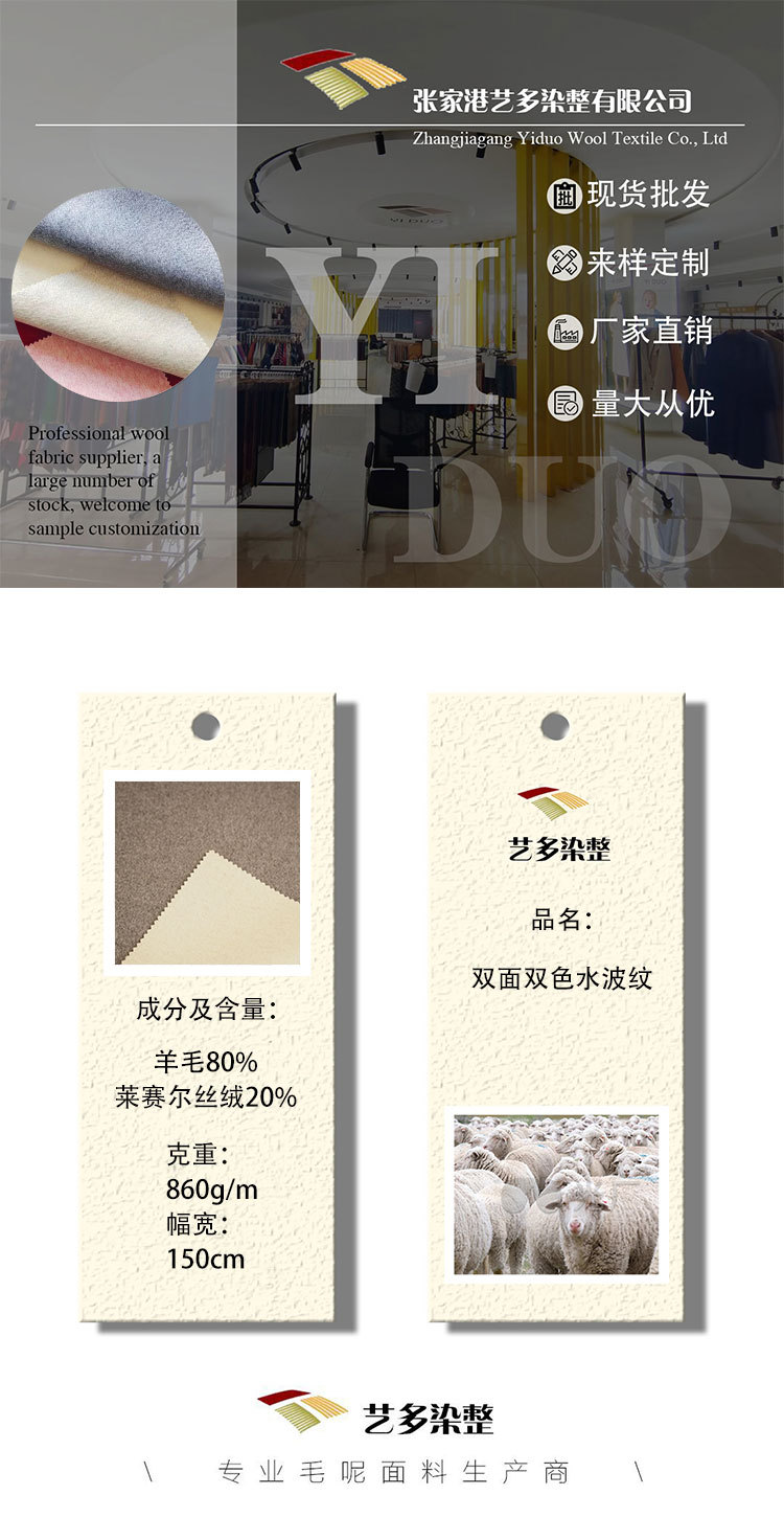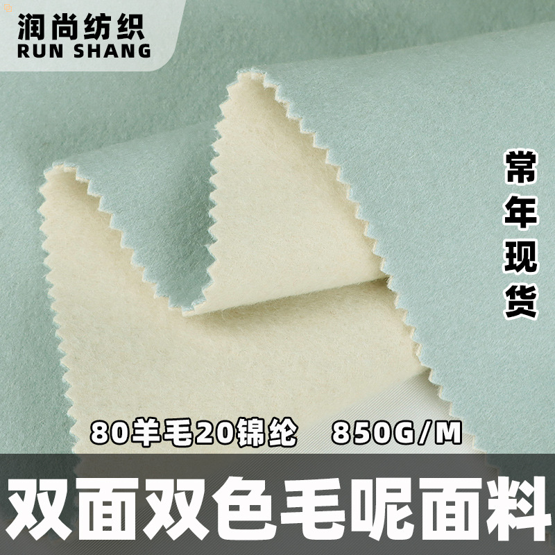 双面双色水波纹80%羊毛大衣呢AB面粗纺素色双面羊绒面料毛呢布料