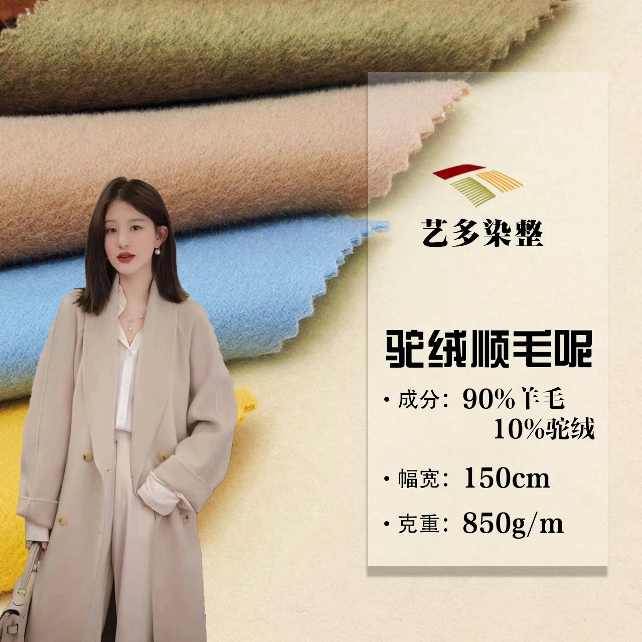 丝绒双面呢面料80羊毛10羊绒10蚕丝秋冬混纺大衣呢毛呢布料粗纺