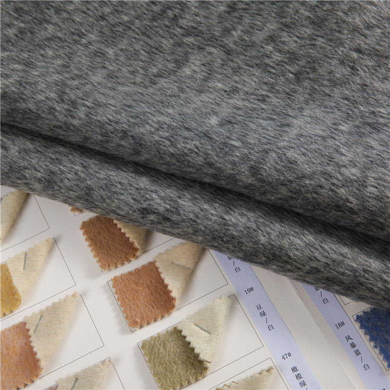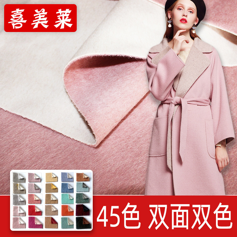 秋冬新品真丝兔绒双面双色毛呢面料 蚕丝羊绒双面异色大衣毛呢料