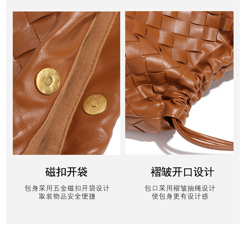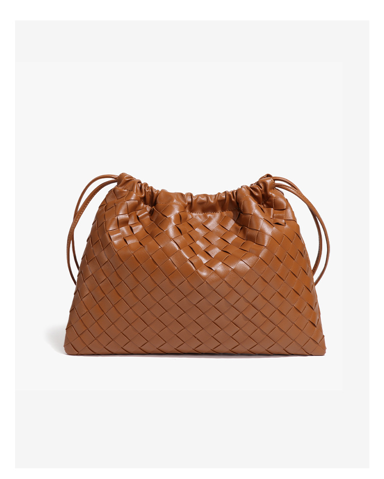 巾着編み込みショルダーバッグ、通勤、カジュアル、多用途、手提げ、プリーツクラウドバッグ、レトロクラウドバッグ