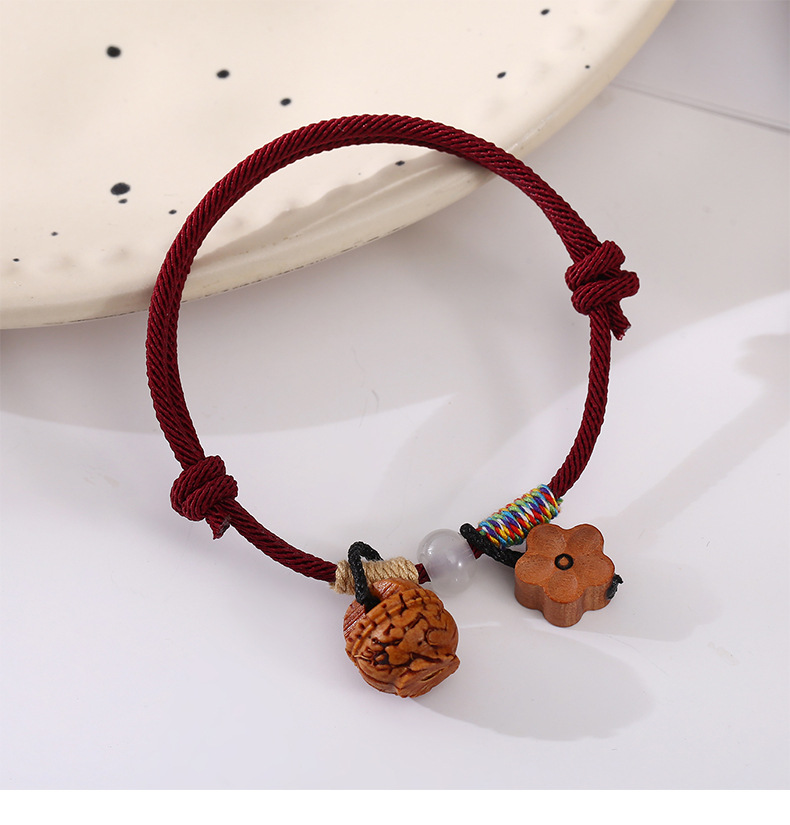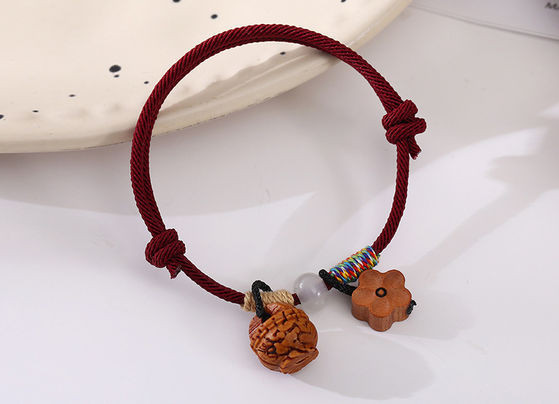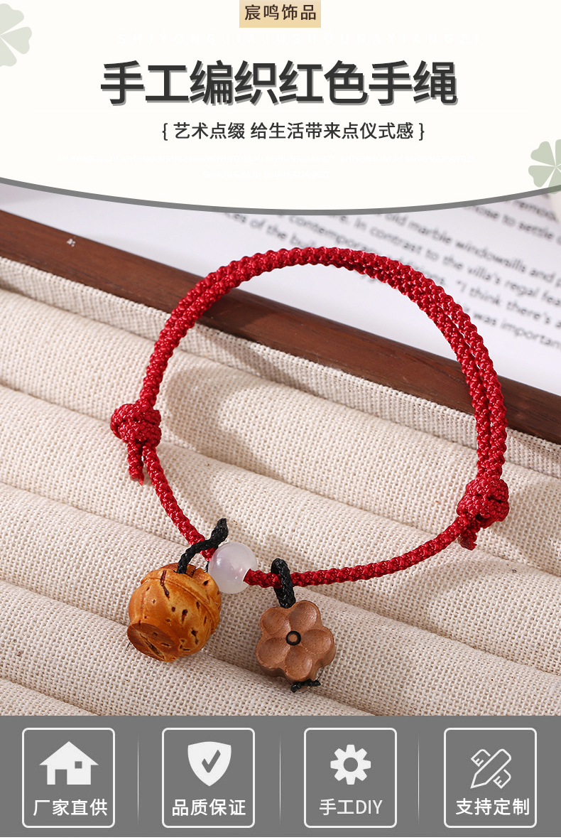 新中式平安扣手绳 红绳手链 桃核桃木男女本命年闺蜜礼物护身手串