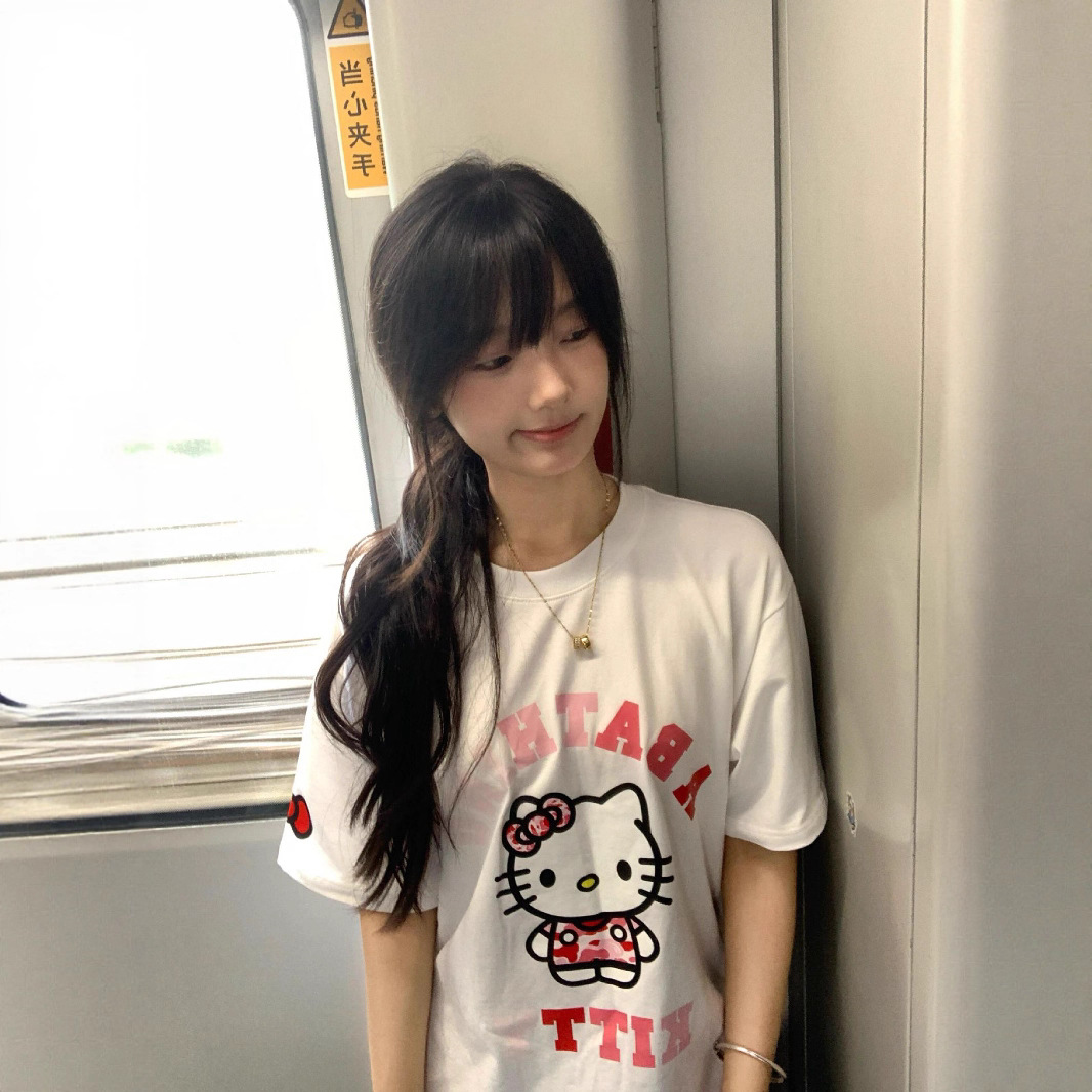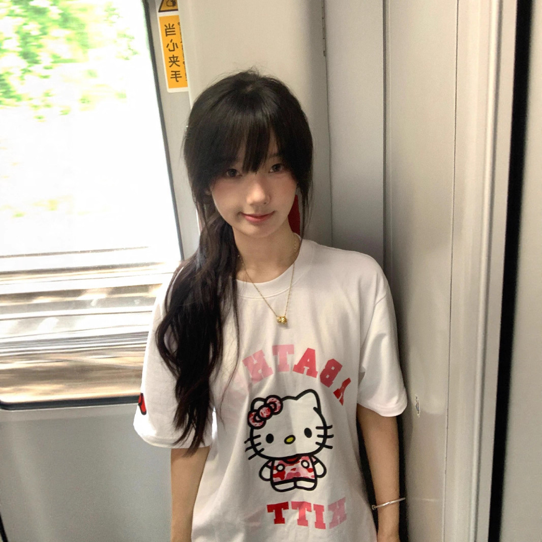 200 グラム純綿 KT プリント大きいサイズ半袖 T シャツ女性のための 2025 夏ルーズカジュアル多用途トップトレンディ