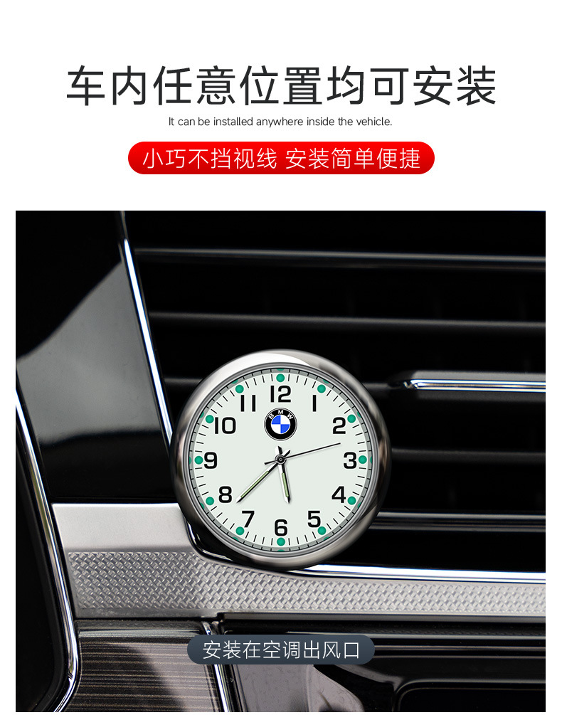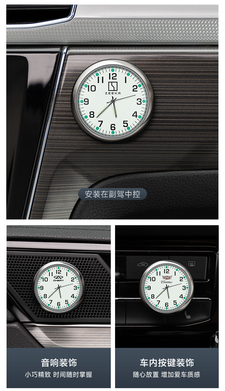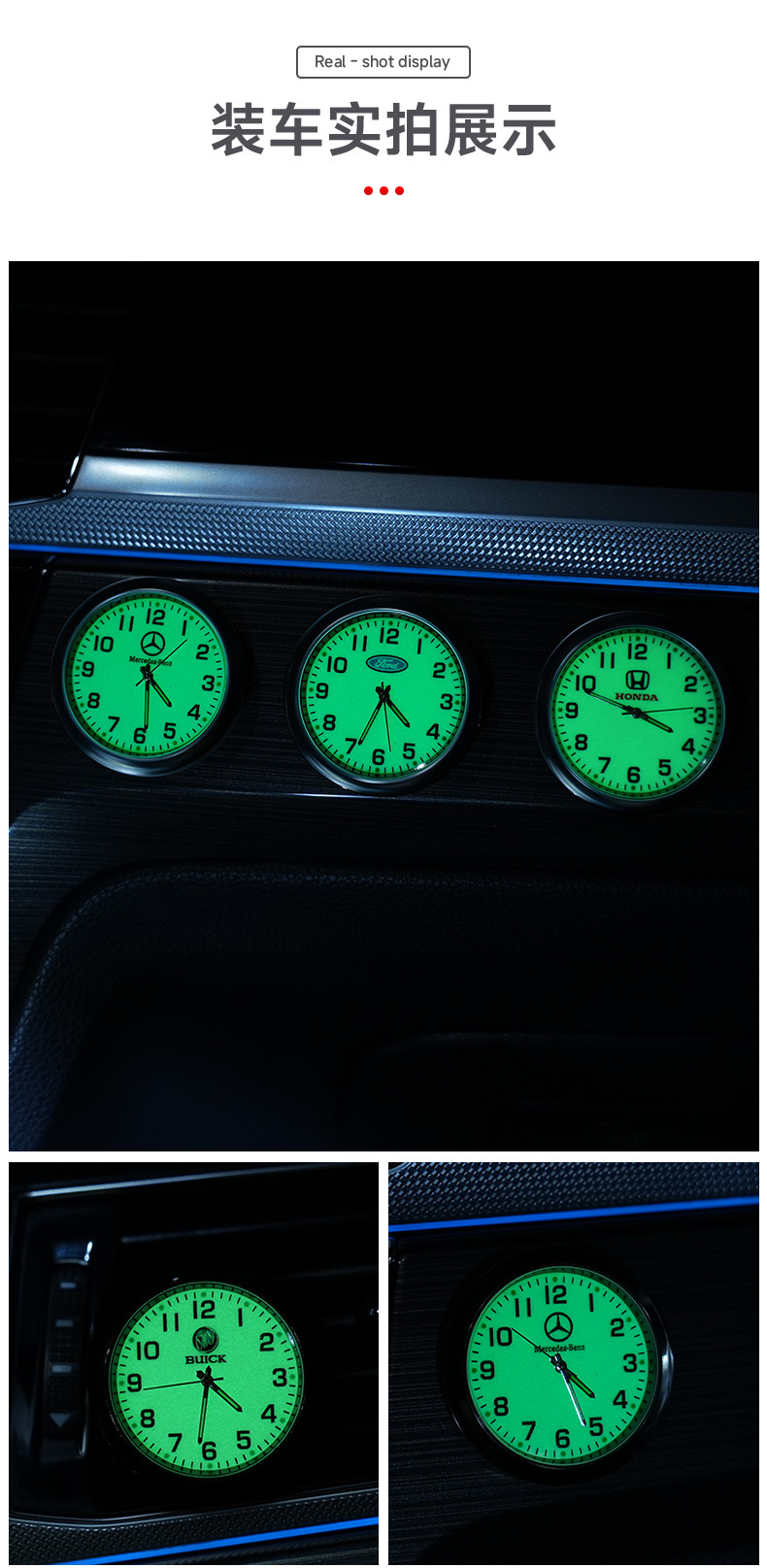 汽车夜光时钟车内中控仪表台石英表车载时间显示器车用电子表装饰