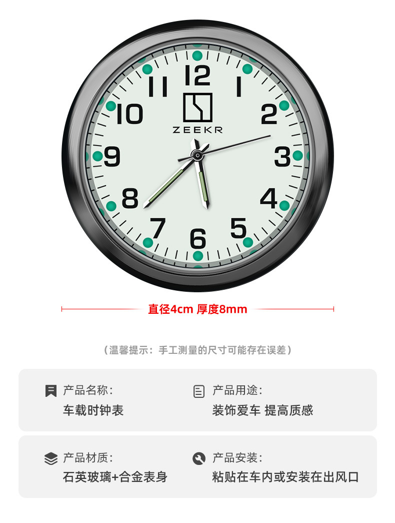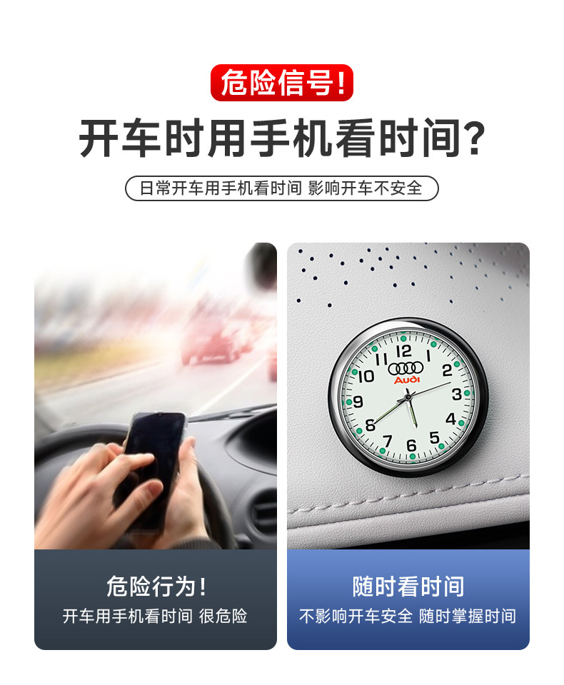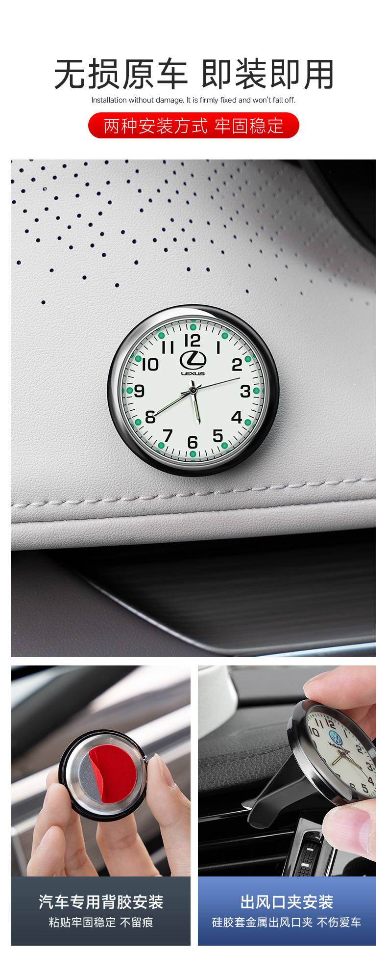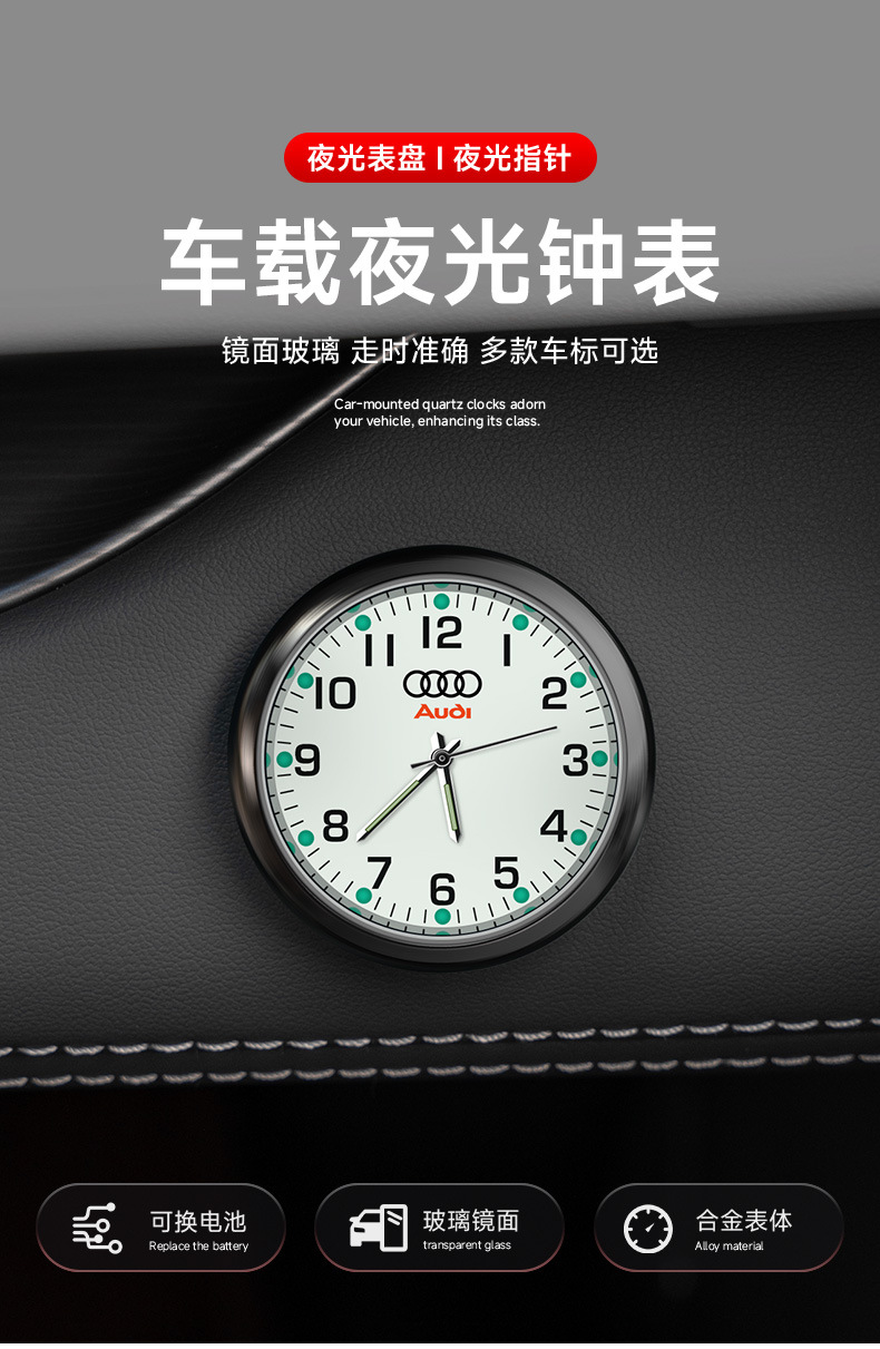 汽车夜光时钟车内中控仪表台石英表车载时间显示器车用电子表装饰