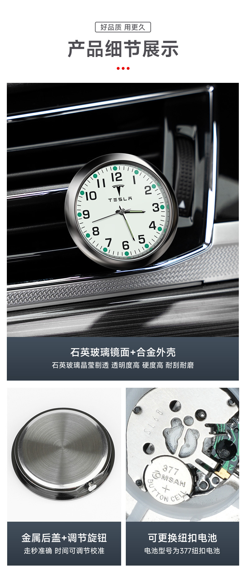 車載時計は任意にワンタッチで直径4cmの電子石英時計を起動します。