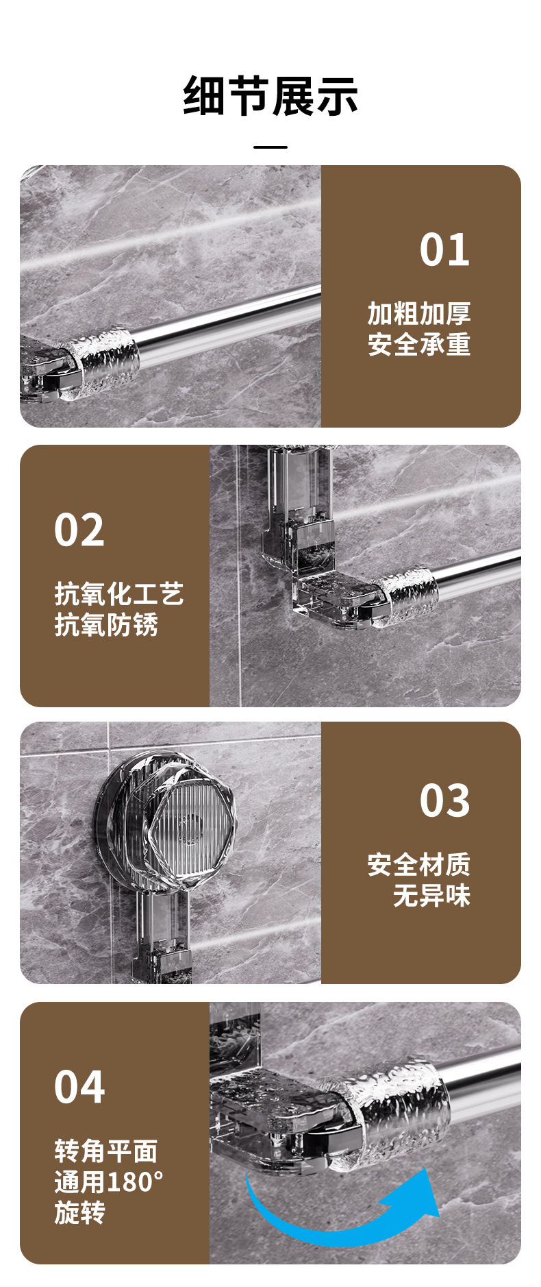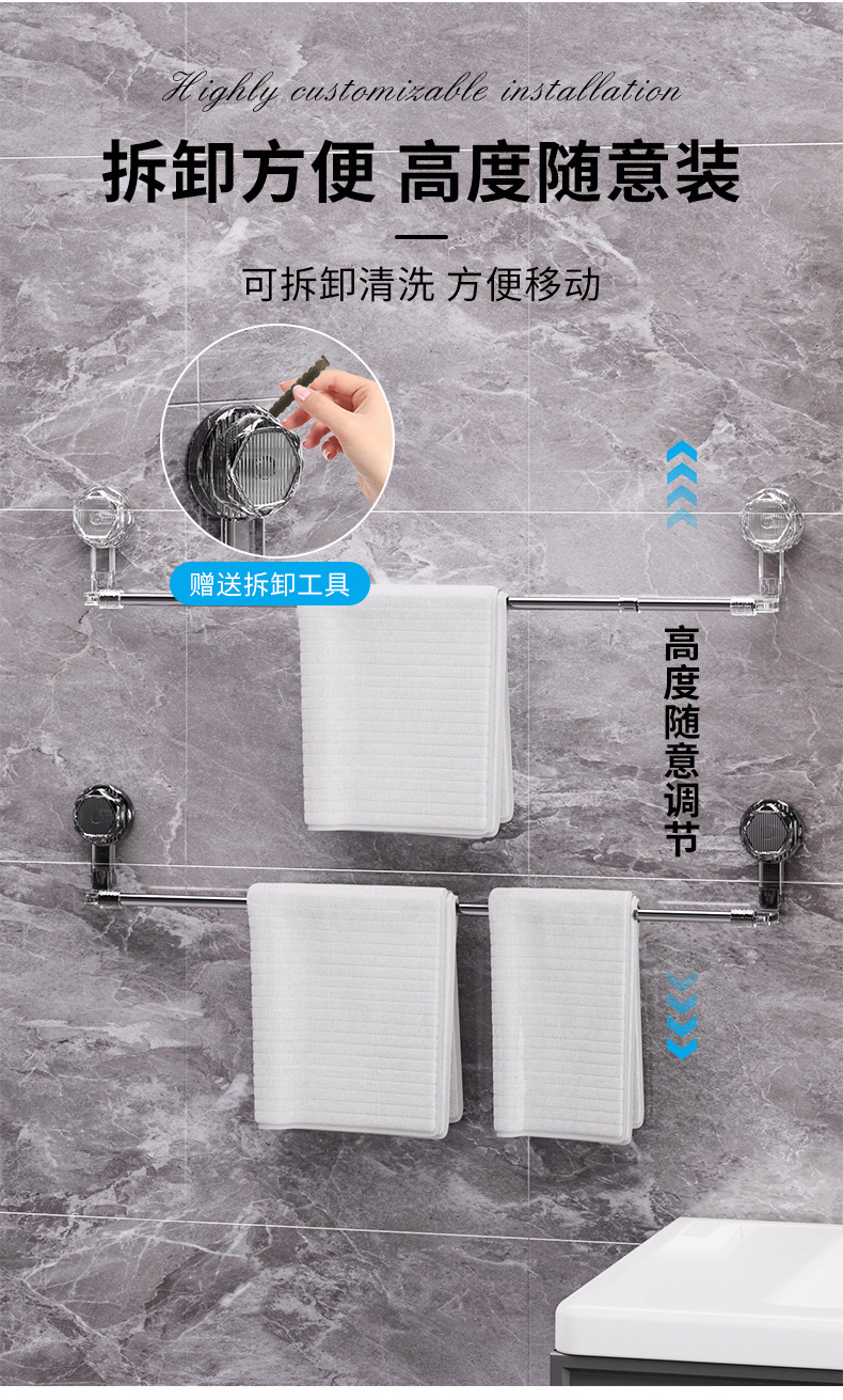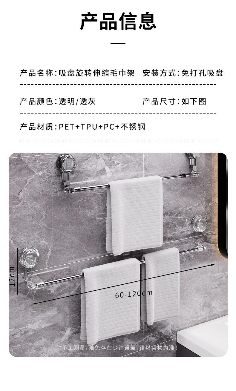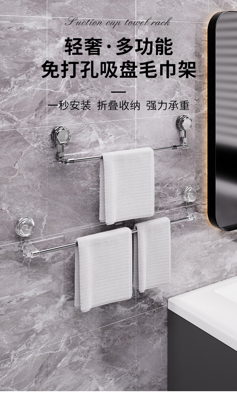 吸盤タオルラック回転可能なシングルロッド伸縮式バスタオルラックバスルーム収納棚パンチフリーバスルームタオルラック