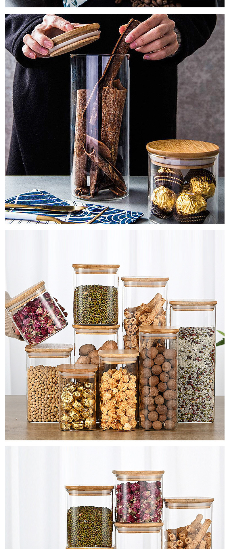 ガラス密封瓶正方形竹蓋収納瓶家庭用収納アーティファクトハウス収納装飾品文化的および創造的なディスプレイ