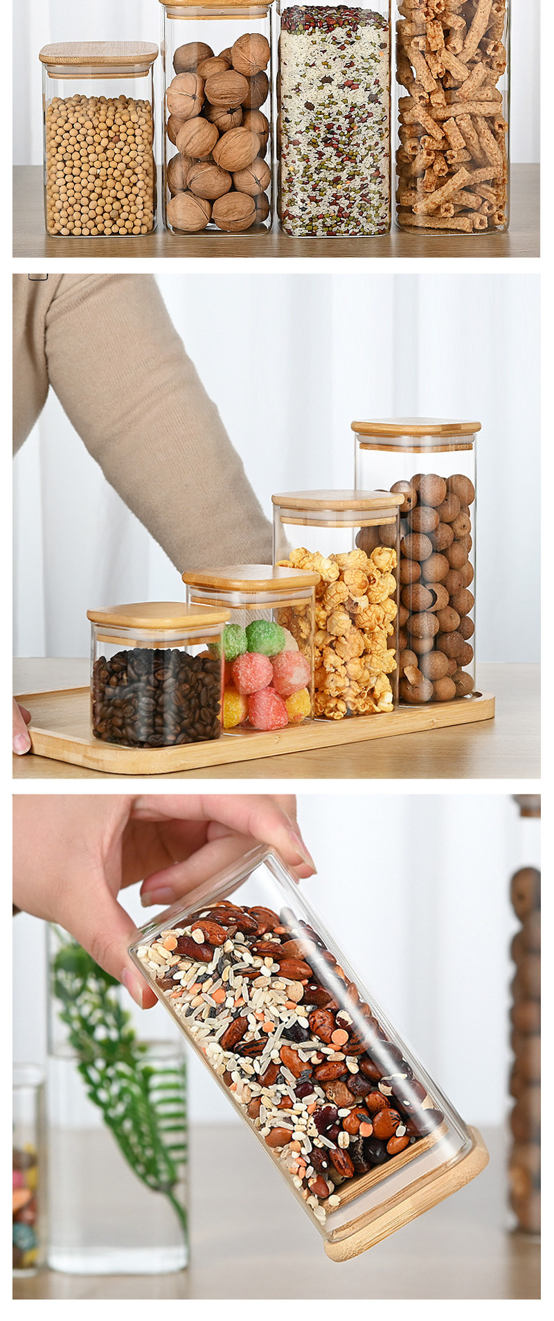 方形高硼硅玻璃储物罐多功能储物罐 厨房杂粮五谷玻璃竹盖密封罐