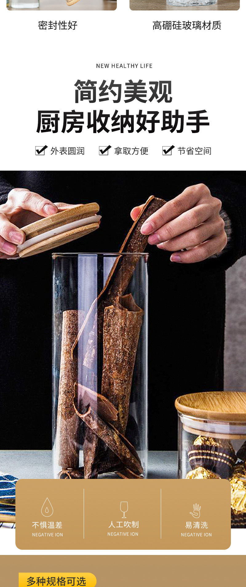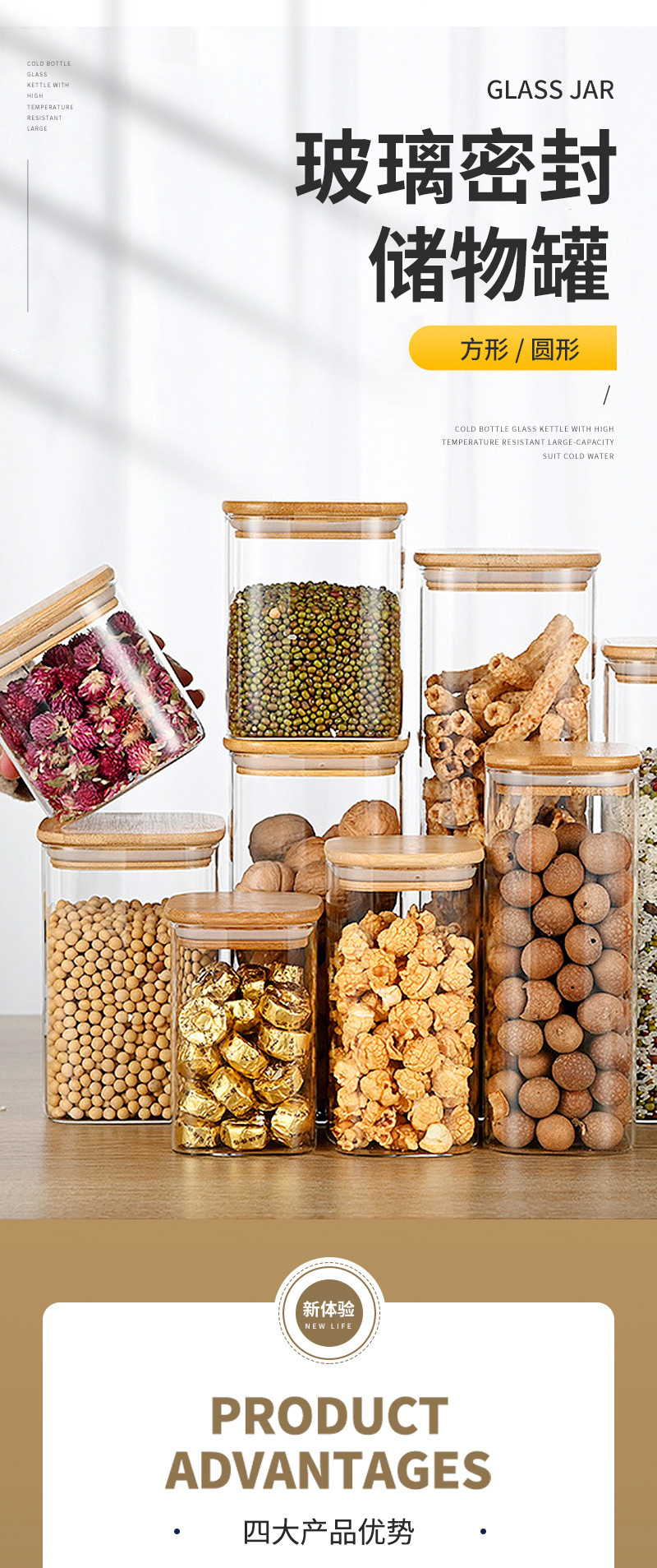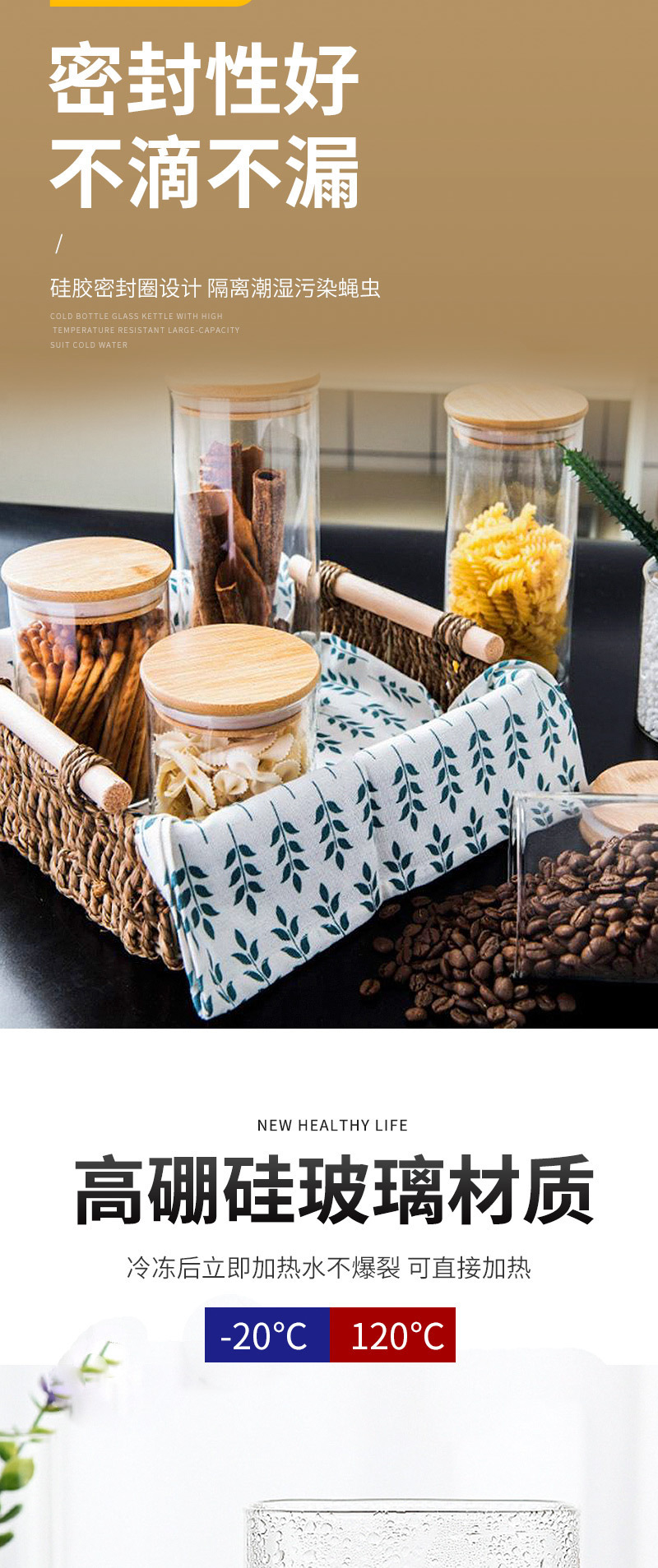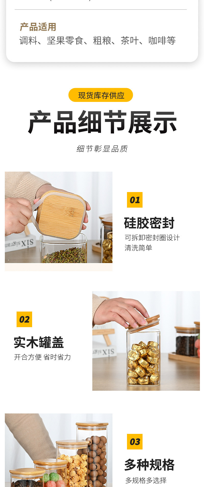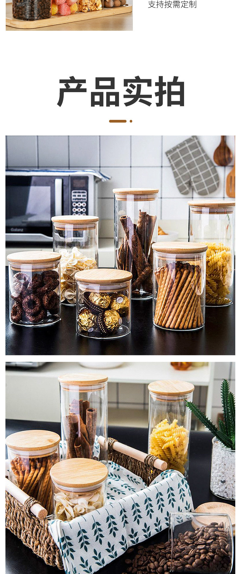 玻璃密封罐木盖厨房通用咖啡豆干果零食罐收纳玻璃罐木珠盖储物罐