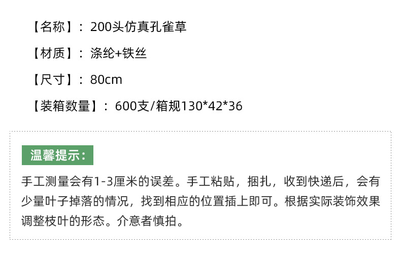 20头烟花树孔雀草DIY商场婚庆路引仿真插花凤尾叶龙须草飞凌草