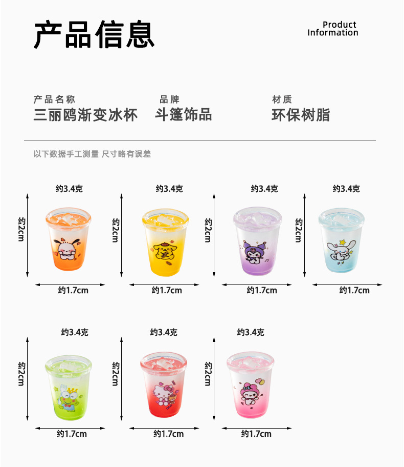 创意卡通食玩三丽鸥渐变冰杯小摆件树脂工艺品车载桌面饰品小配饰