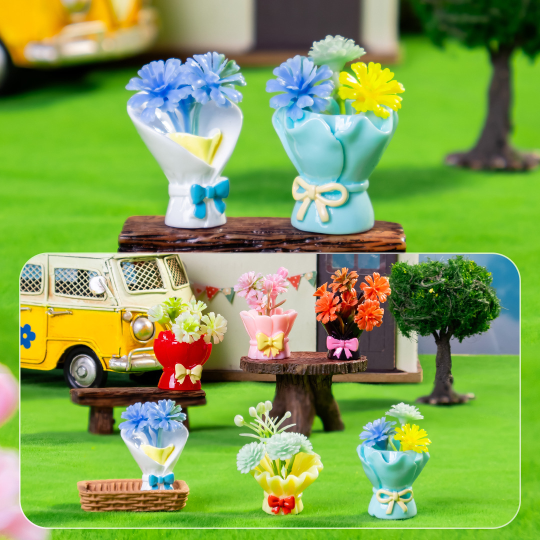 卡通ins风捧花仿真花朵玫瑰花花束树脂 工艺品萌粒桌面车载小摆件