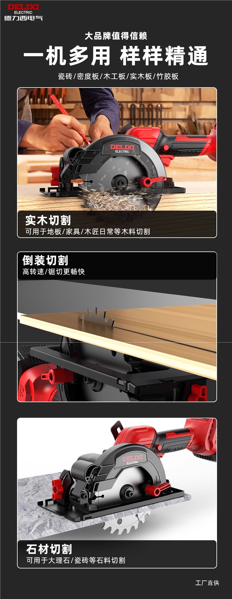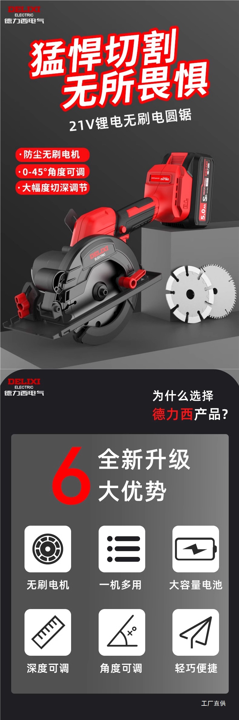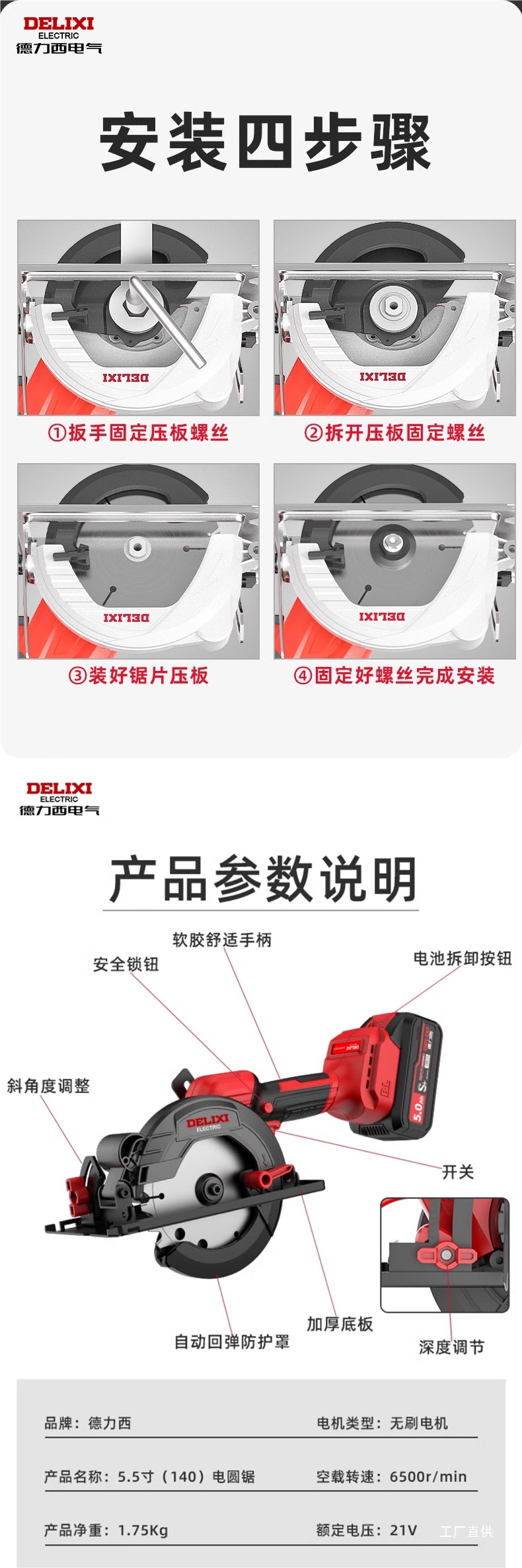 Delixi ブラシレス電気丸鋸リチウム電池充電式木工ポータブル電動のこぎり大理石切断機丸鋸その他
