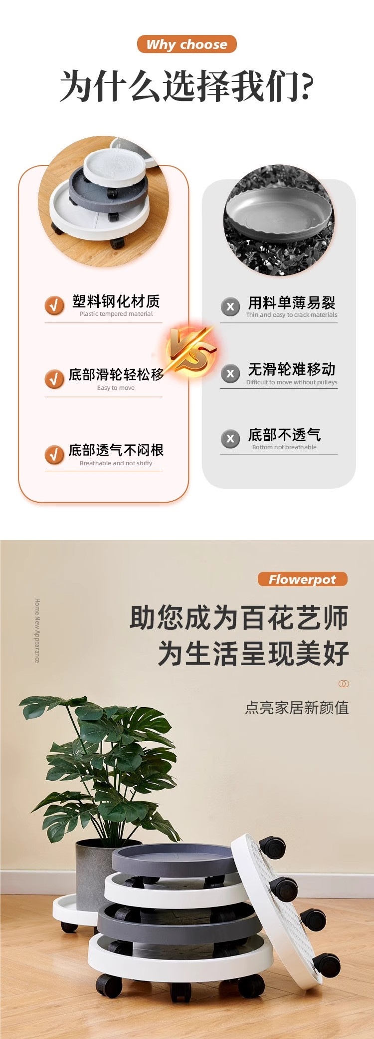植木鉢トレイには、ホイール付きの万能ホイールベース樹脂植木鉢ベース移動可能ローラー付きの植木鉢トレイがあります