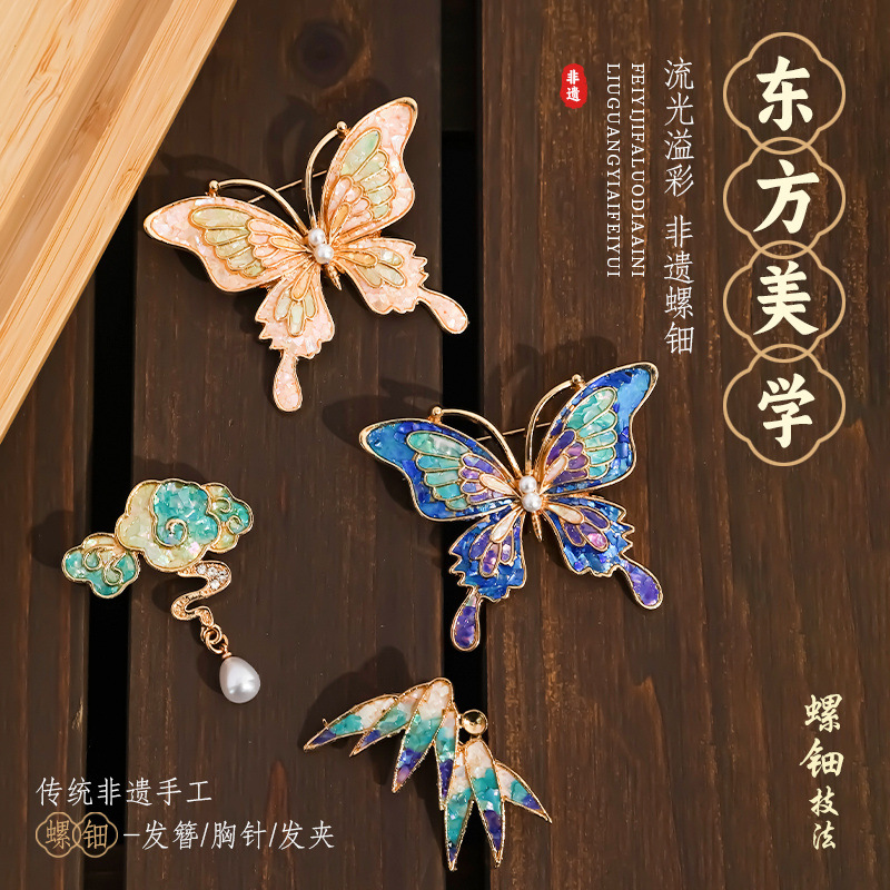 螺鈿ブローチ DIY 材料パッケージ無形文化遺産手作り貝殻ヘアピン蝶ジュエリーベース胚ウォームアップ活動