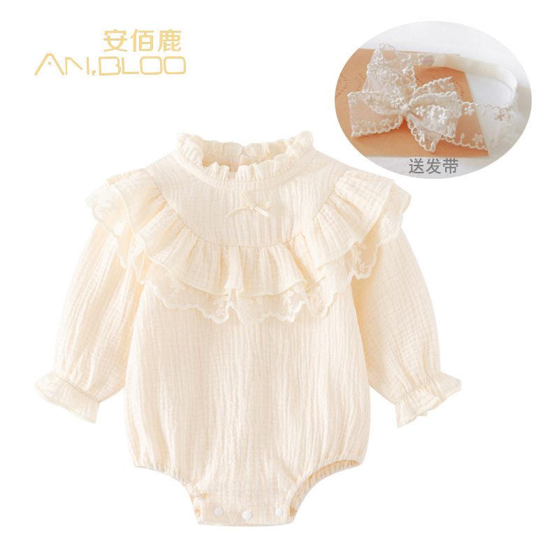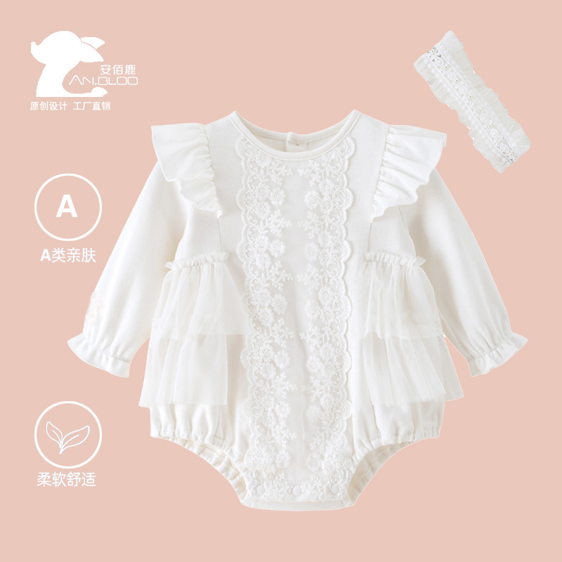 Anbaolu 純綿新生児服春と秋の女の赤ちゃん秋服満月ワンピースジャンプスーツプリンセスロンパース