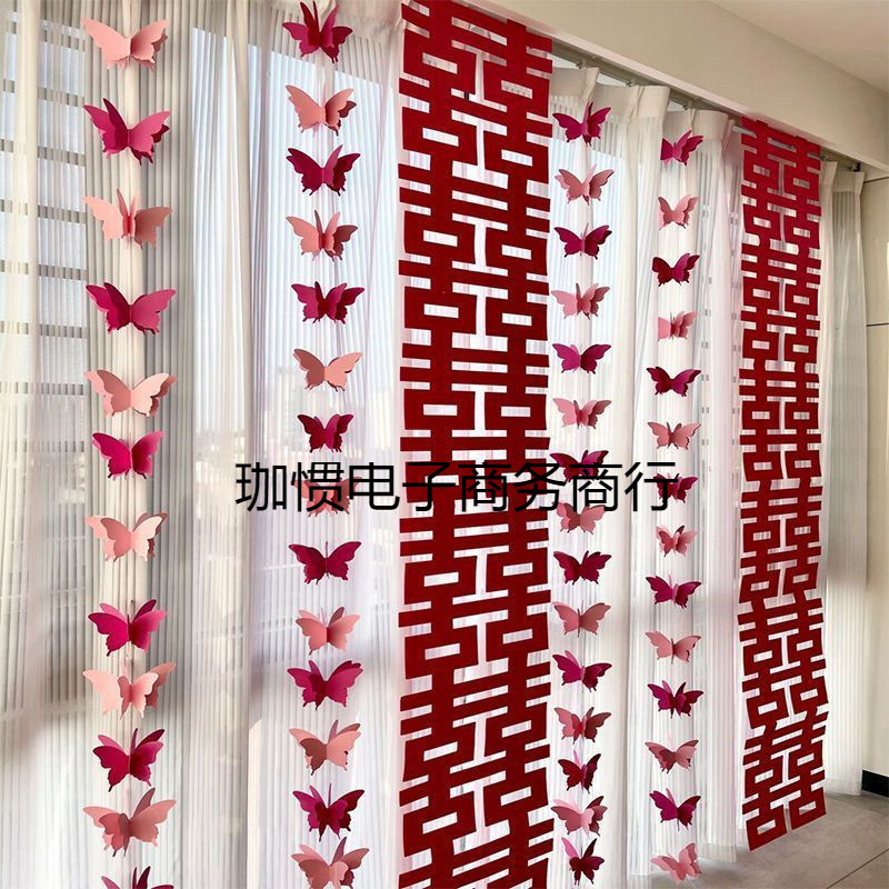 結婚式の部屋のレイアウト、長い幸せの文字ステッカー、男性と女性の蝶のラテアート、寝室の装飾、結婚式の理想的な巣