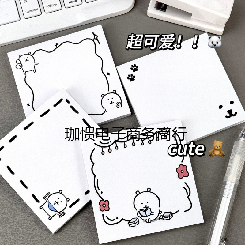 自己嘲笑クマ付箋、シンプルなインスタイル、高見えするかわいい学生メッセージ、N回にわたる破れやすい付箋