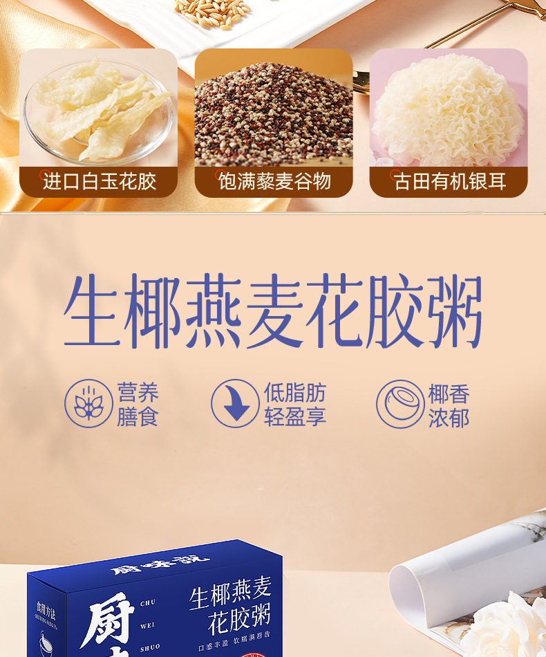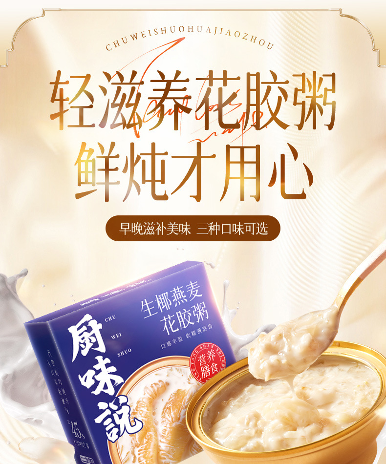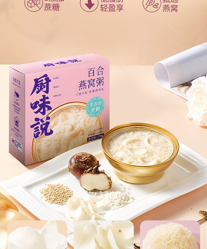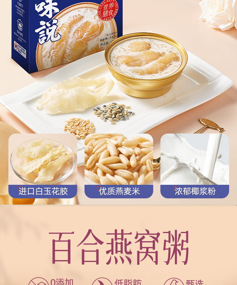 コンフィー粥、生ココナッツオートミール、栄養価の高い新鮮な煮込みツバメの巣、怠け者のためのすぐに食べられる朝食、調理不要の食品