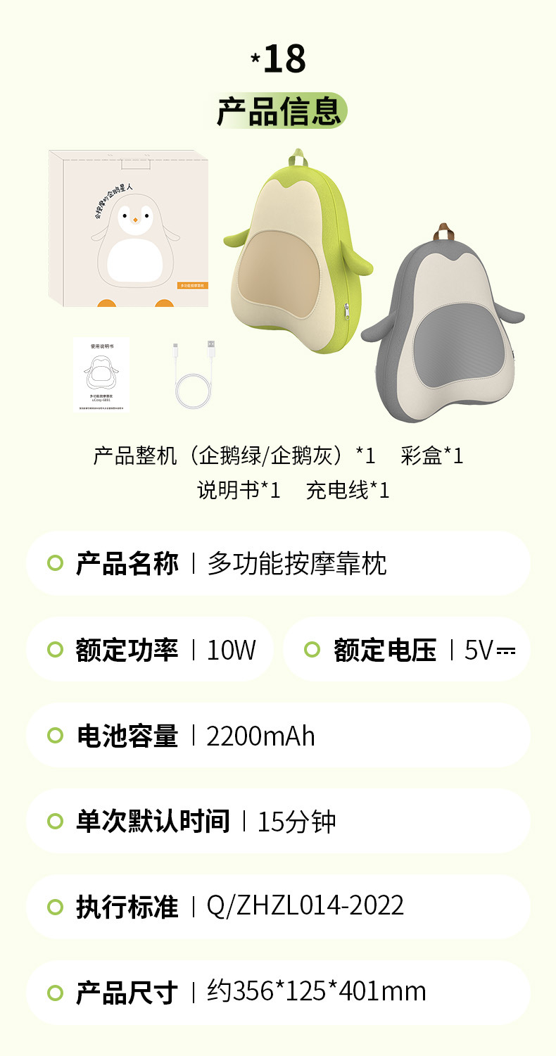 鸭梨枕多功能按摩器腰部背部揉捏热敷颈椎枕节日礼物女友毕业礼