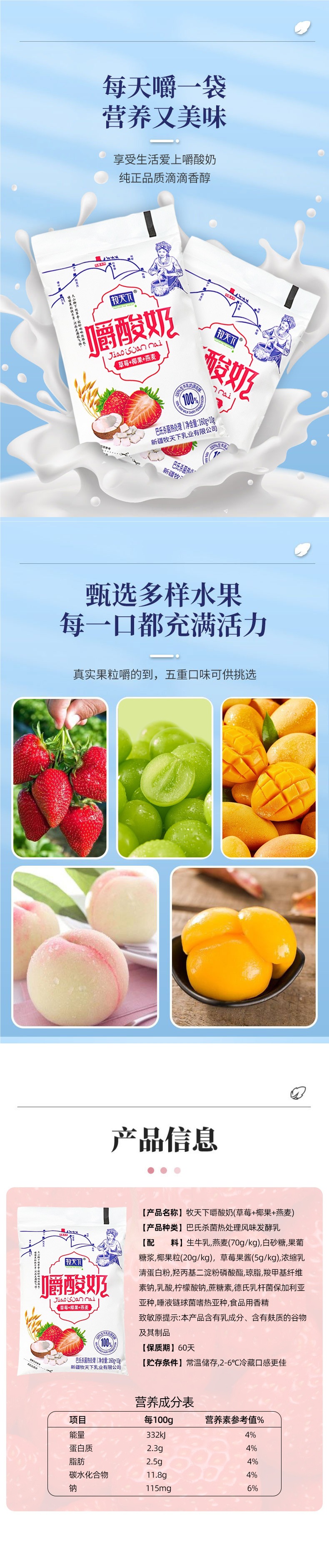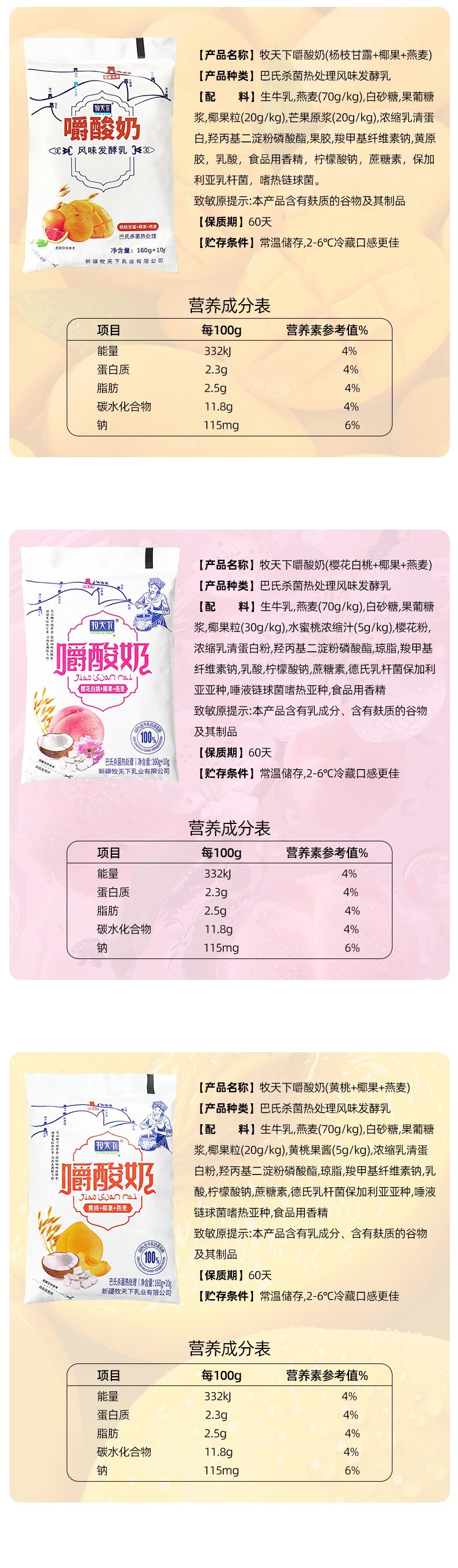 牧天下嚼酸奶黄桃草莓蓝莓燕麦酸奶5种口味混合整箱10袋js包装