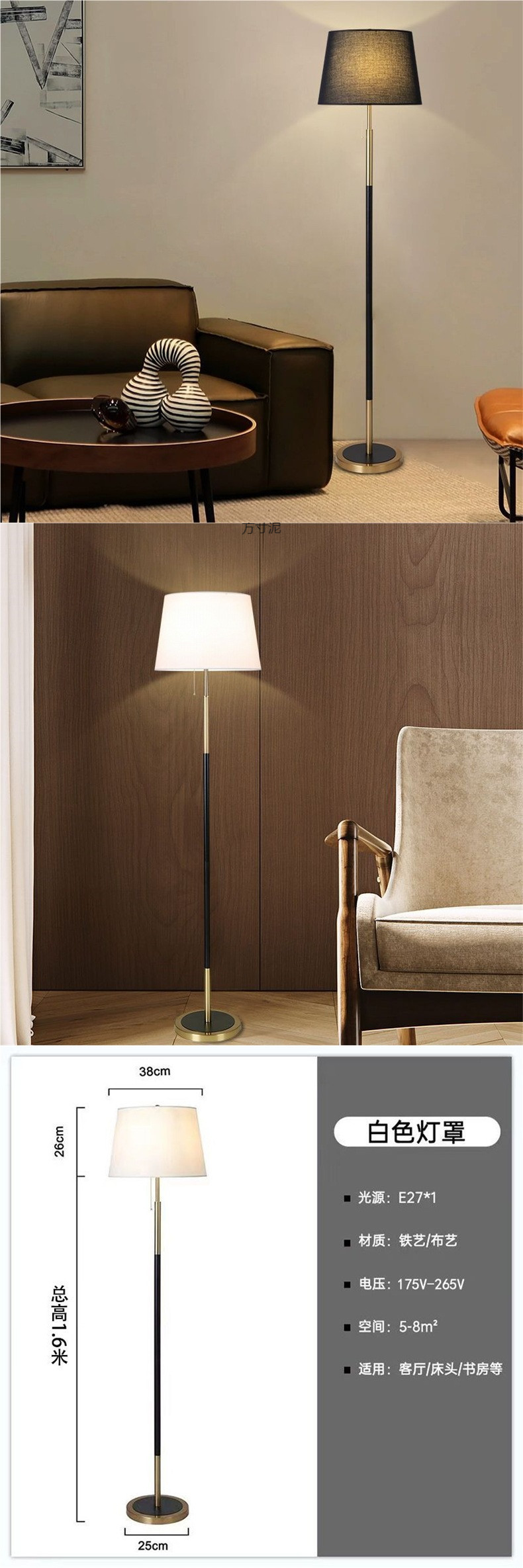 アメリカンライト高級アイアンフロアランプトレイ付きホテルリビングルーム書斎シンプルなベッドルームB&Bファブリック垂直フロアランプ