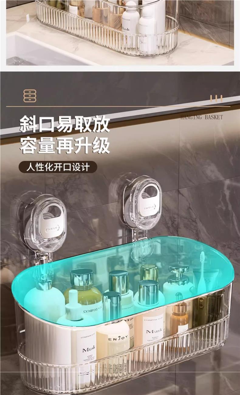 大型吸盤収納ラック浴室シャワージェルハンギングバスケット浴室化粧品収納ボックス壁掛け収納ラック