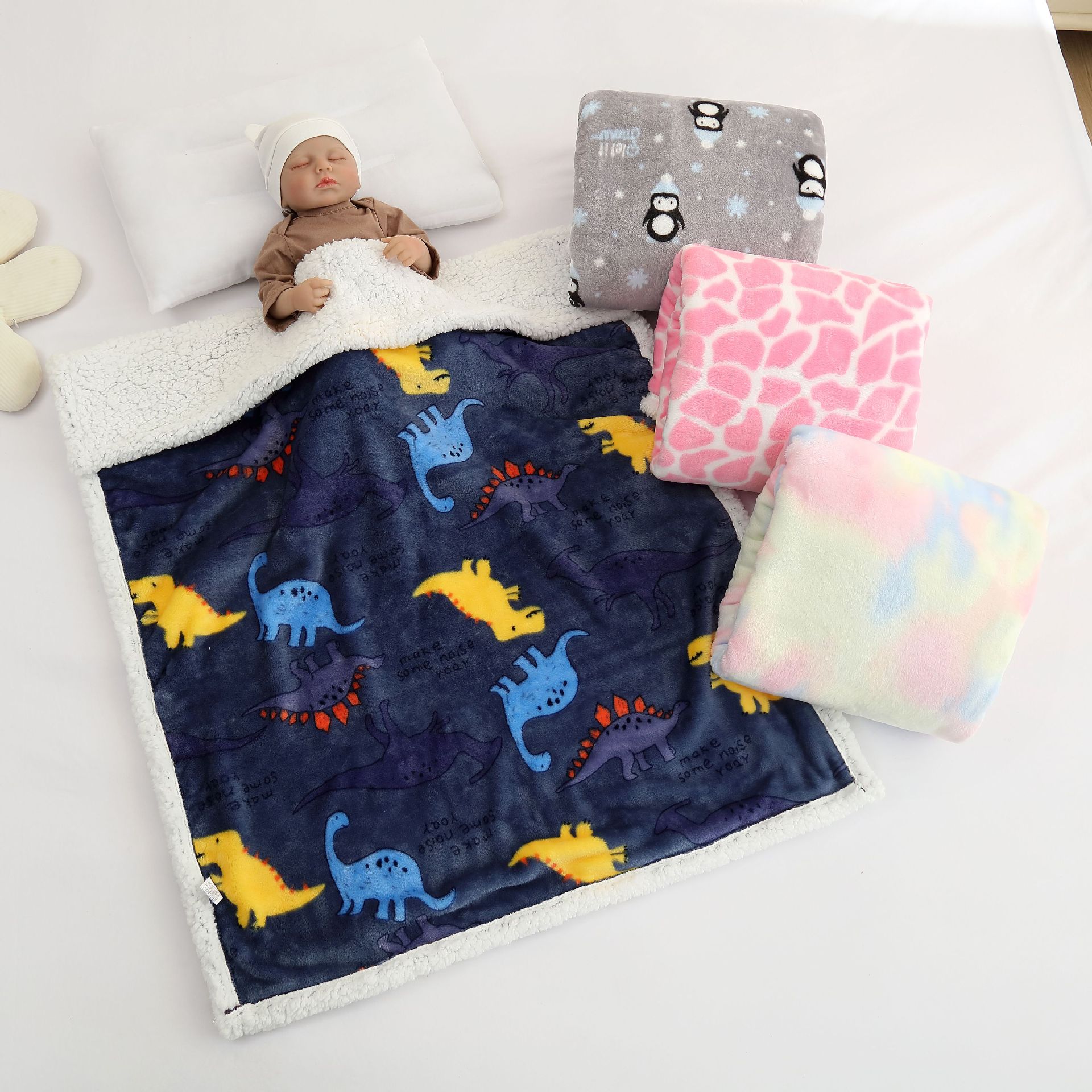 外国貿易クロスボーダーベビー二層ブランケットプリントフランネル子供ブランケット子羊ベルベットベビーブランケット会社ギフトブランケット