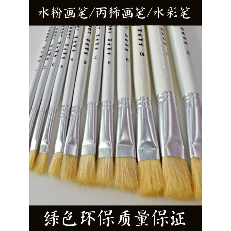 羊尾平筆水チョークブラシ上海油絵ブラシバルクフラットヘッドウールペン顔料ペン絵画ペンセット