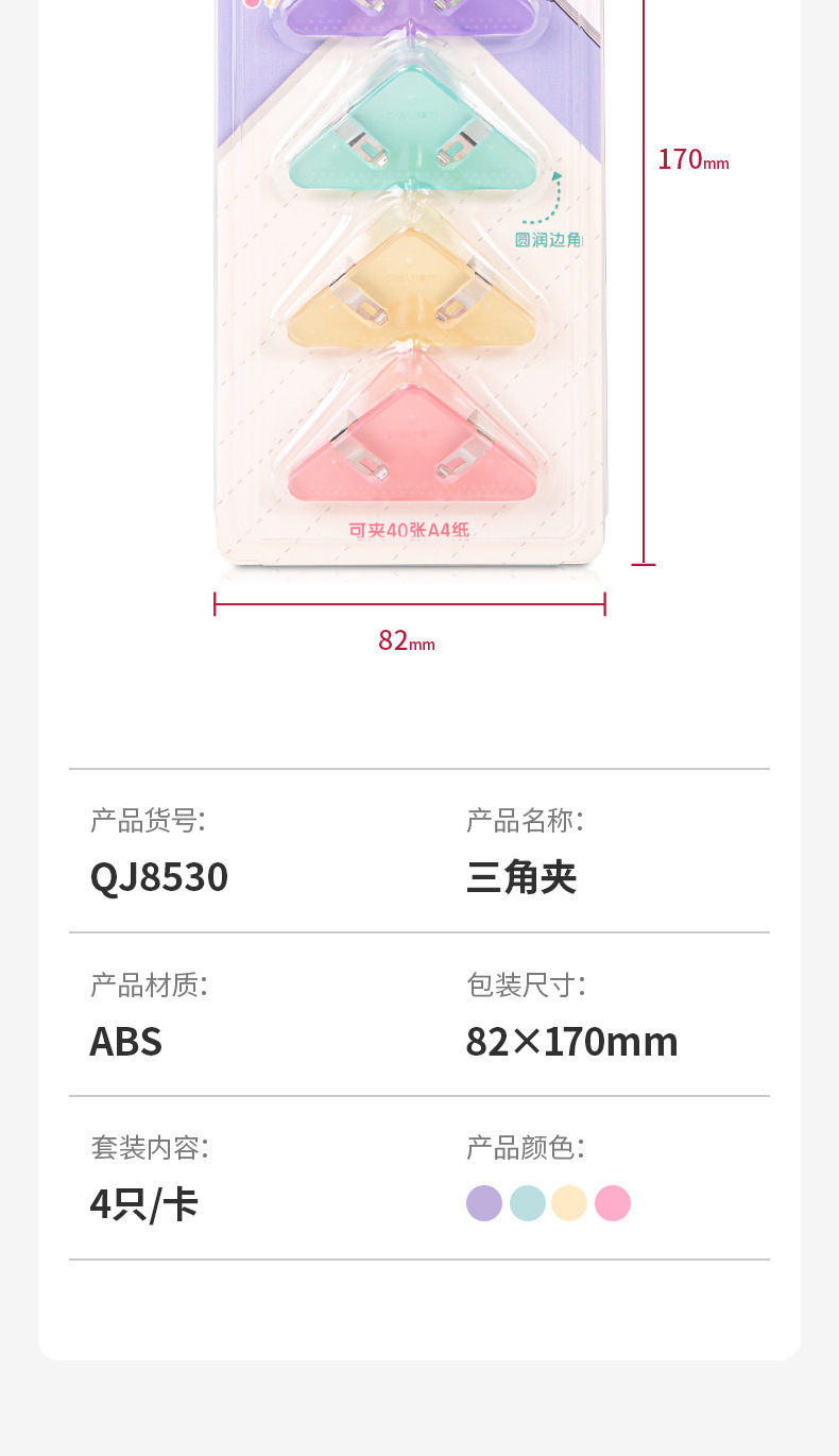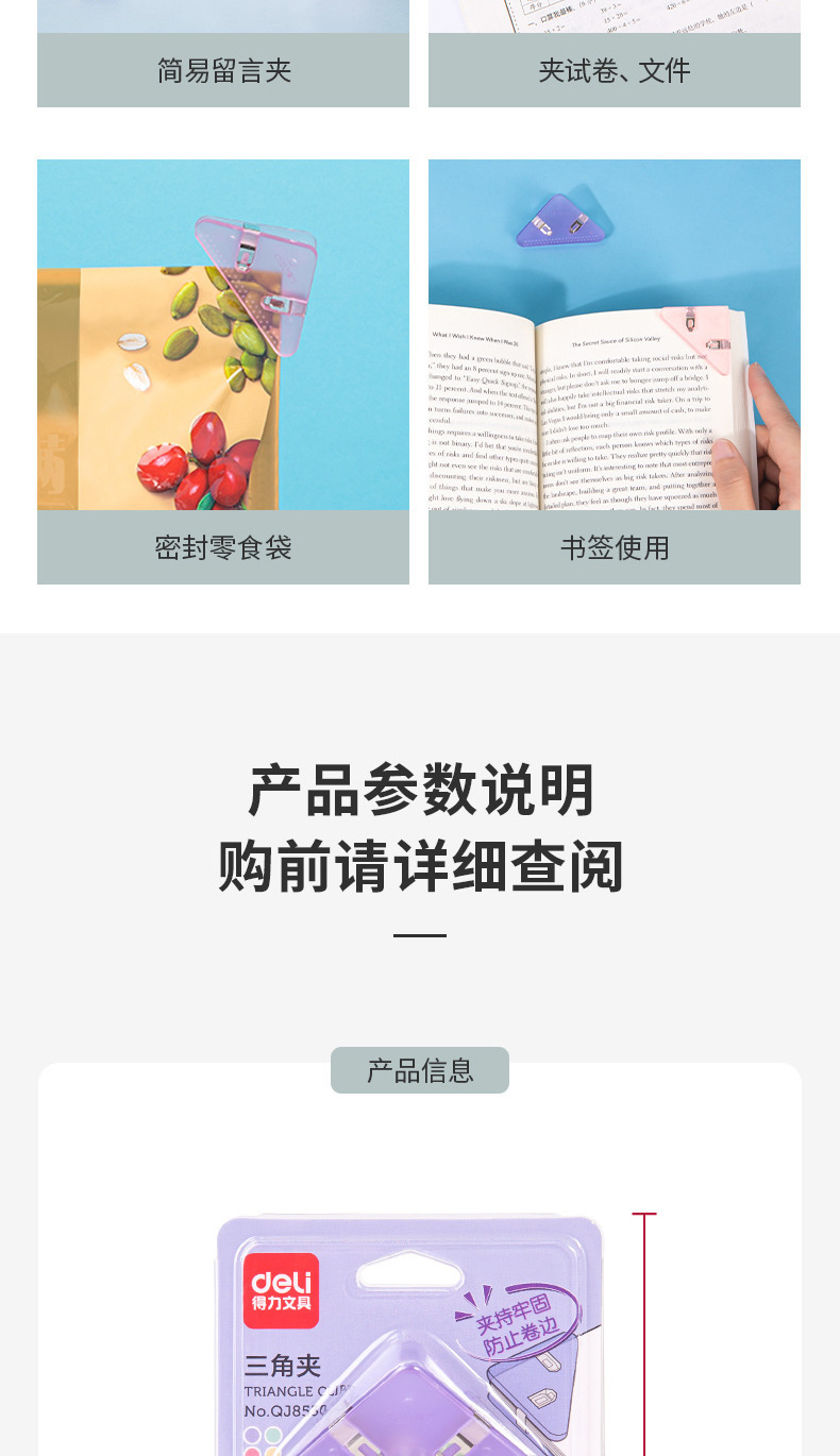 有力三角クリップ巻き止めエッジ角クリップ答案用紙クリップ書類チケットクリップ収納整理プラスチッククリップqj8530
