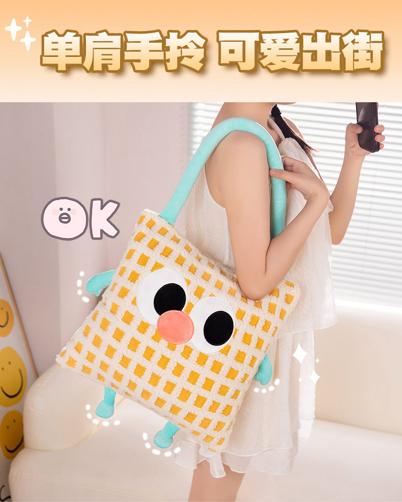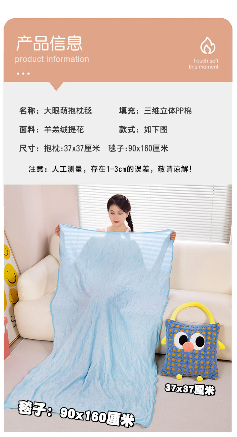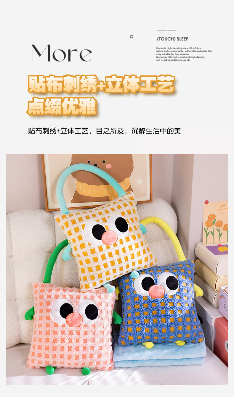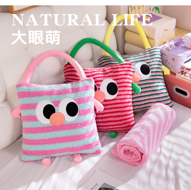 多巴胺大眼仔二合一抱枕被手提两用腰靠垫办公室午休盖毯车载靠枕