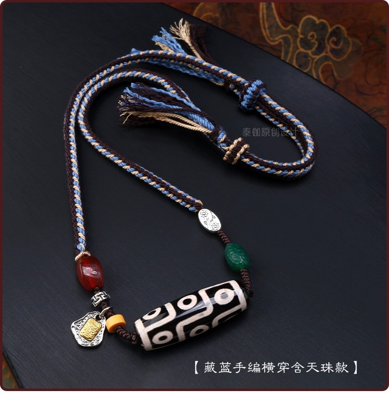 ハイエンドチベット手織りロープ、天珠横ネックレス、ロープペンダント、ロープペンダント、鎖骨チェーン、調節可能