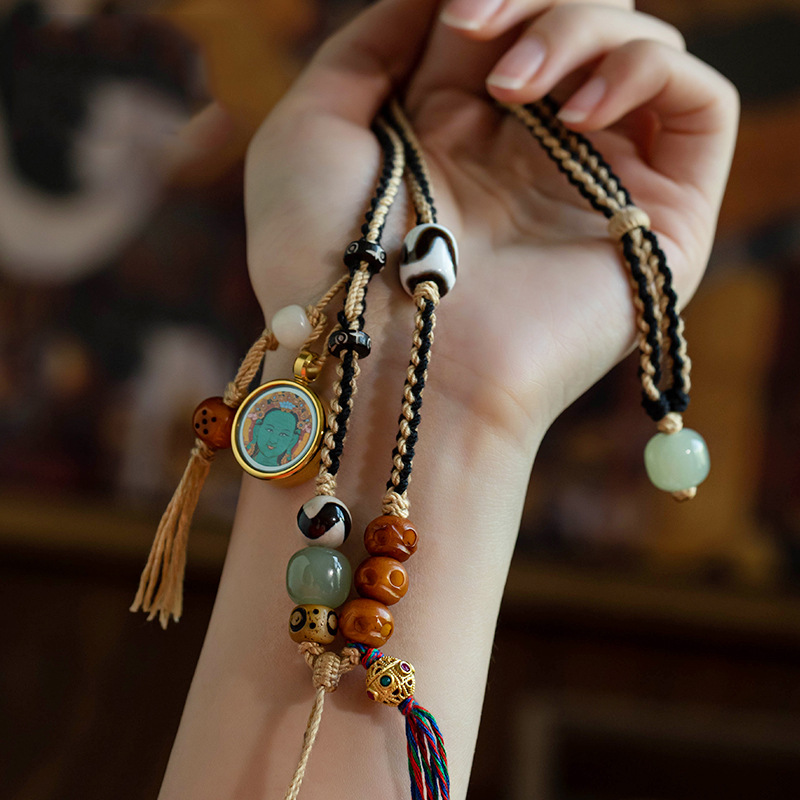 ペンダントストラップタンカペンダントロープチベット手織り翡翠ペンダントネックレスロープ蜜蝋ストラップZikiram